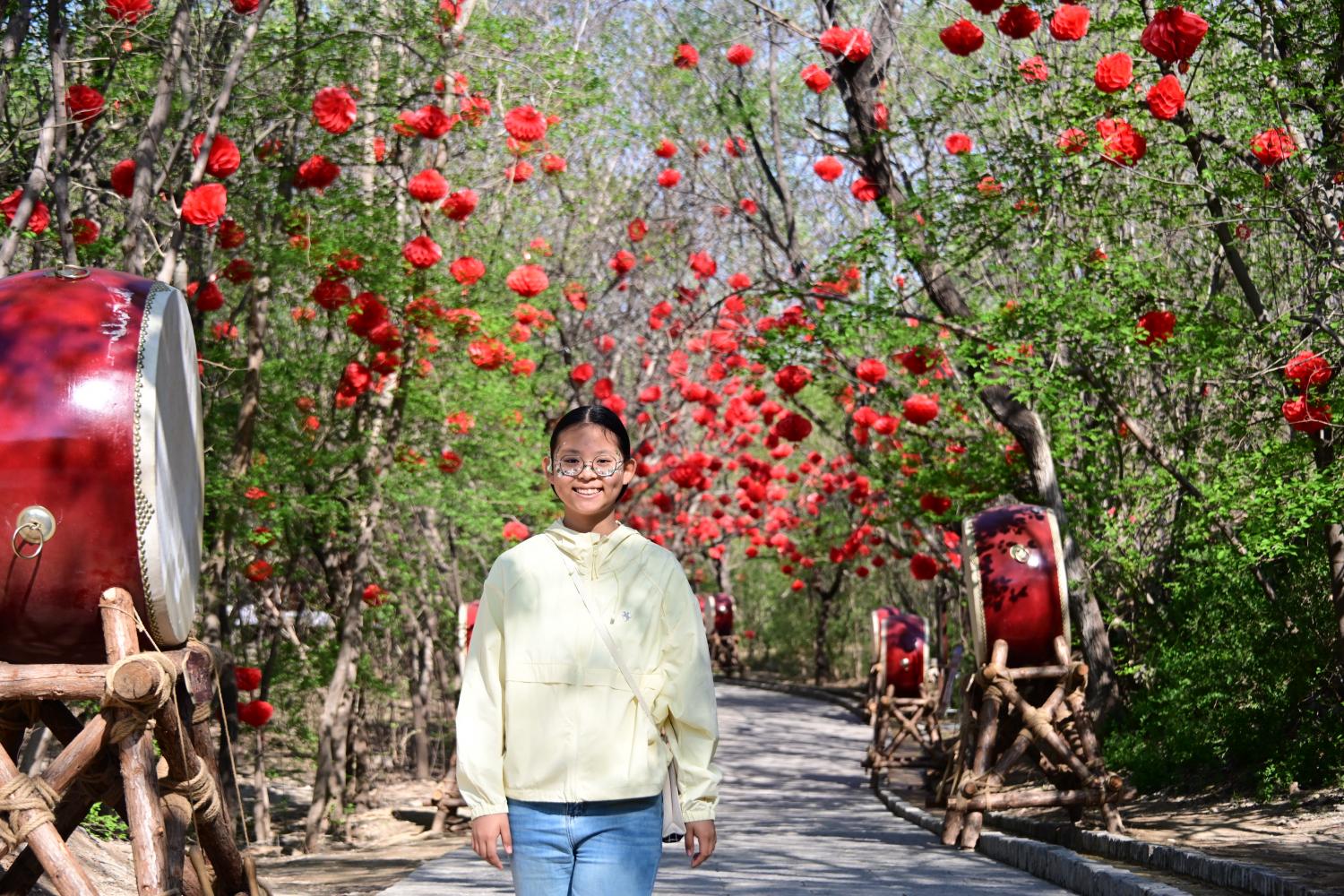 此时满眼的红灯笼和大鼓,显然是景区氛围营造的需要。