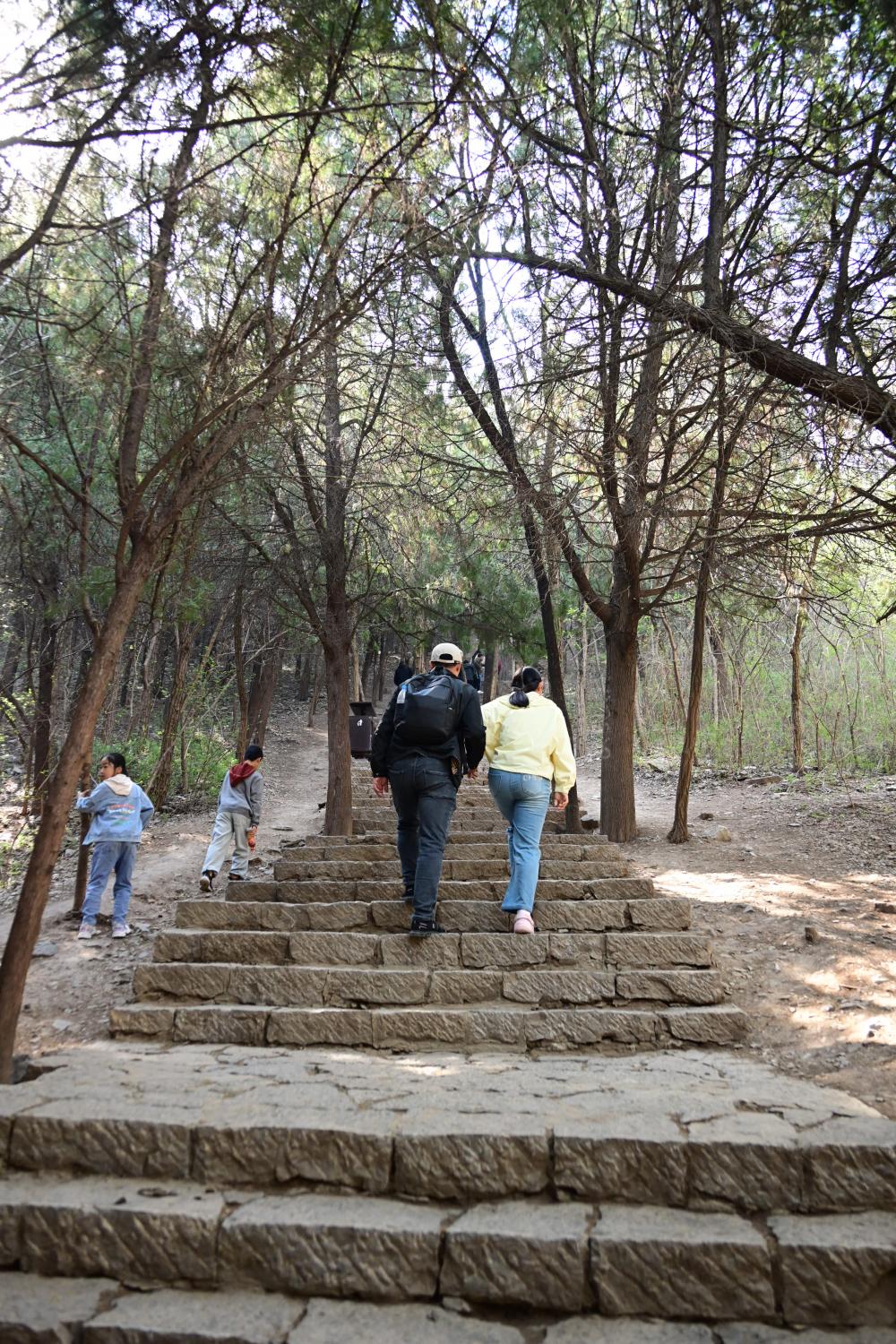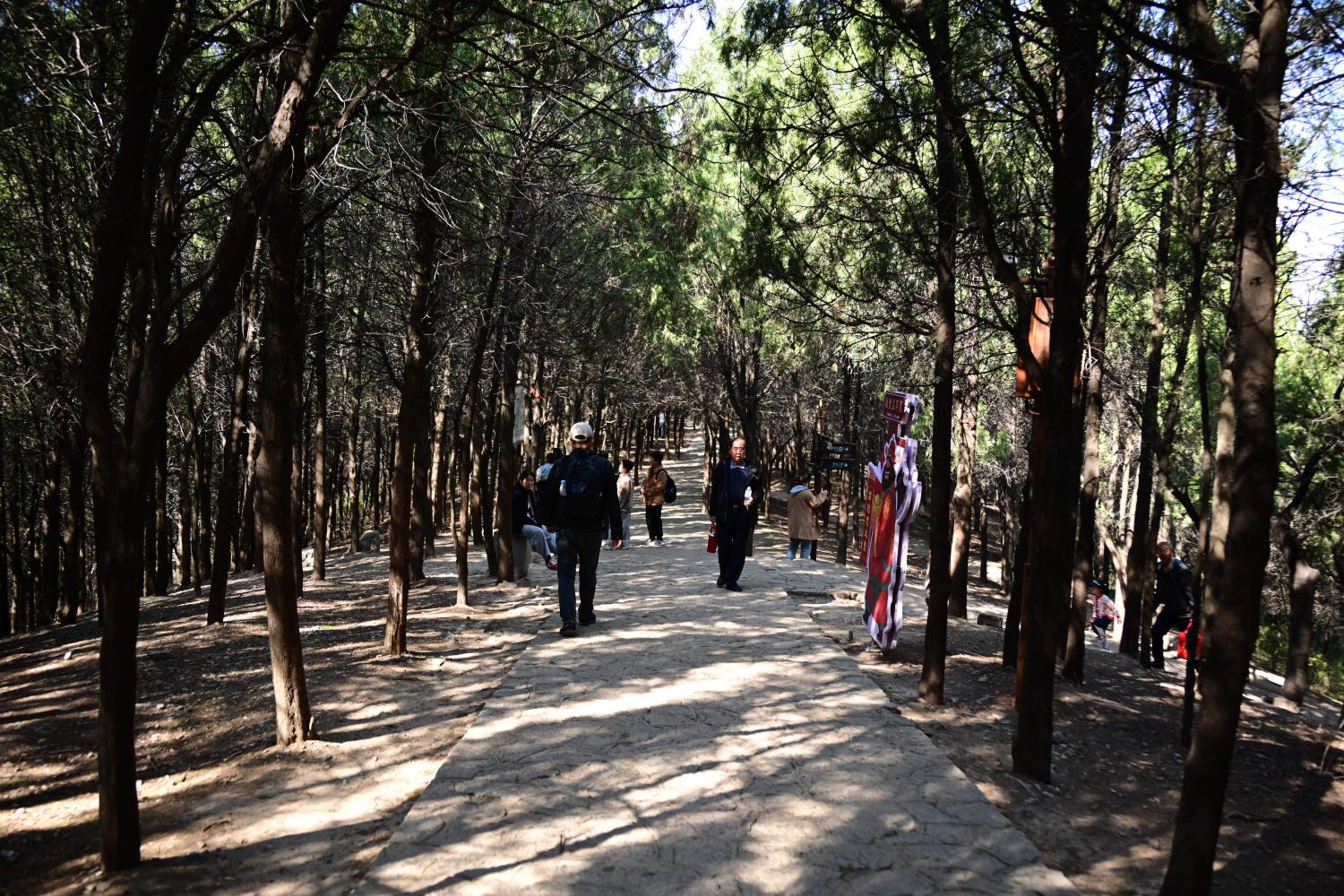 这个宋江马道,原本是梁山义军运送粮草、传递消息的要道,传说宋江的白龙马踏出了这条山路,因此得名。这条路连接着山脚和山腰,往上走会依次经过断金亭、黑风口,最终抵达山顶的忠义堂。