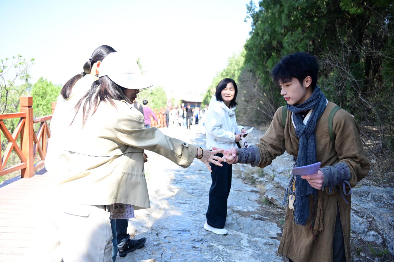 遇到古装的小哥,在派发银票。