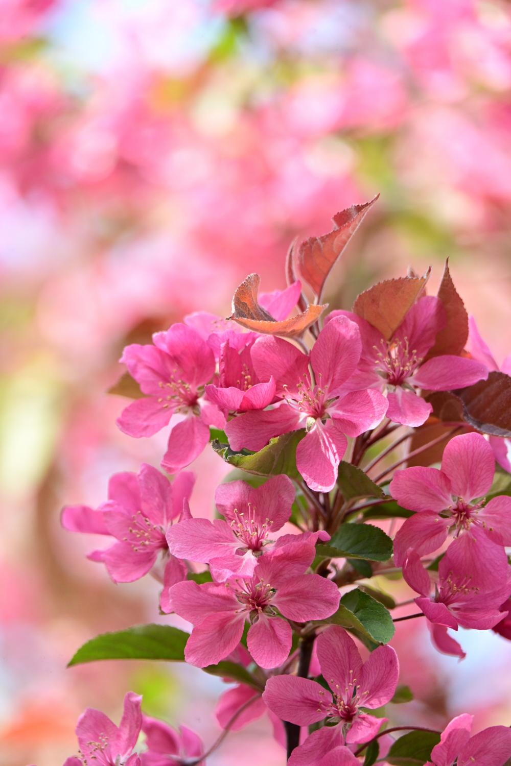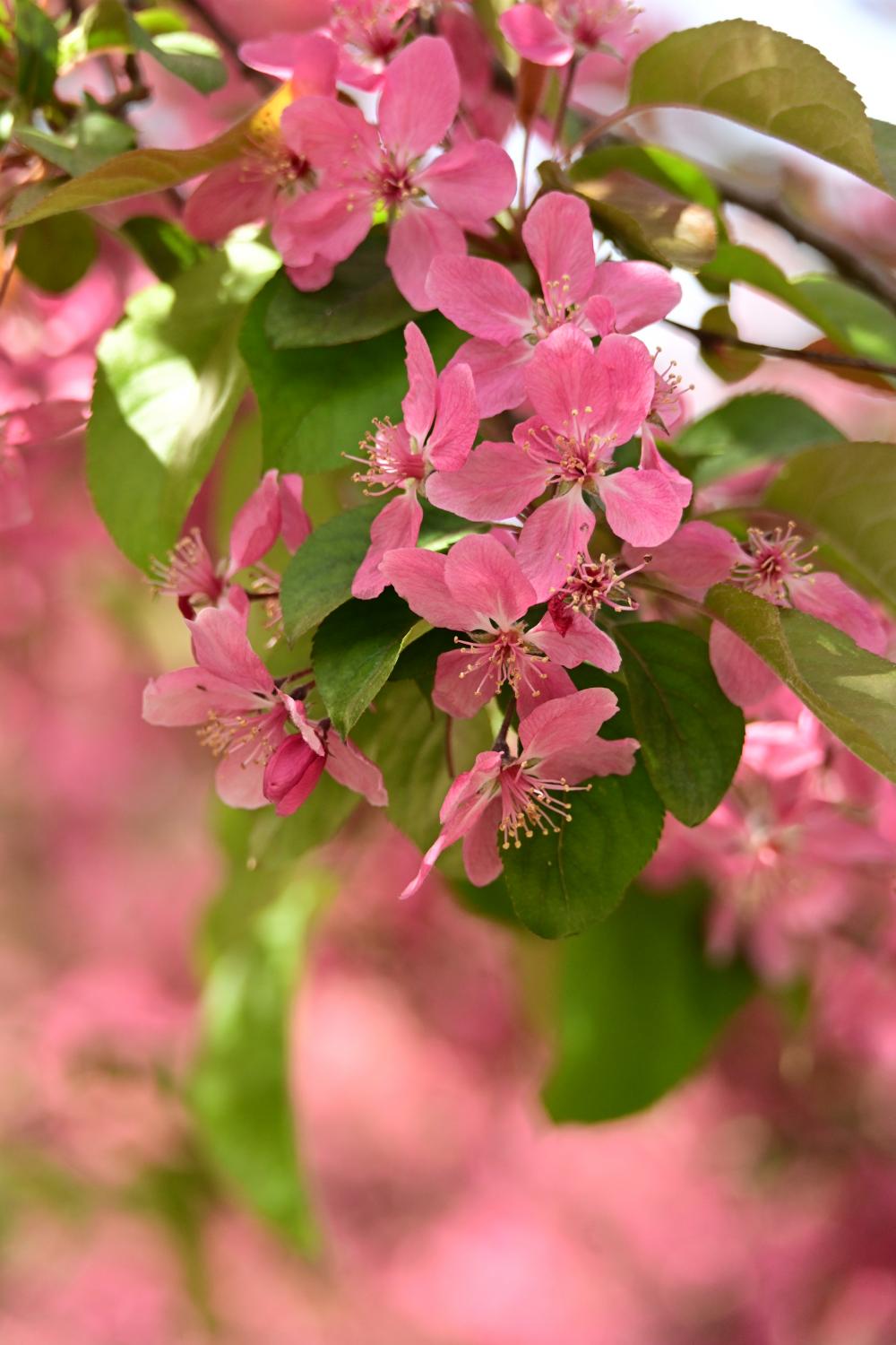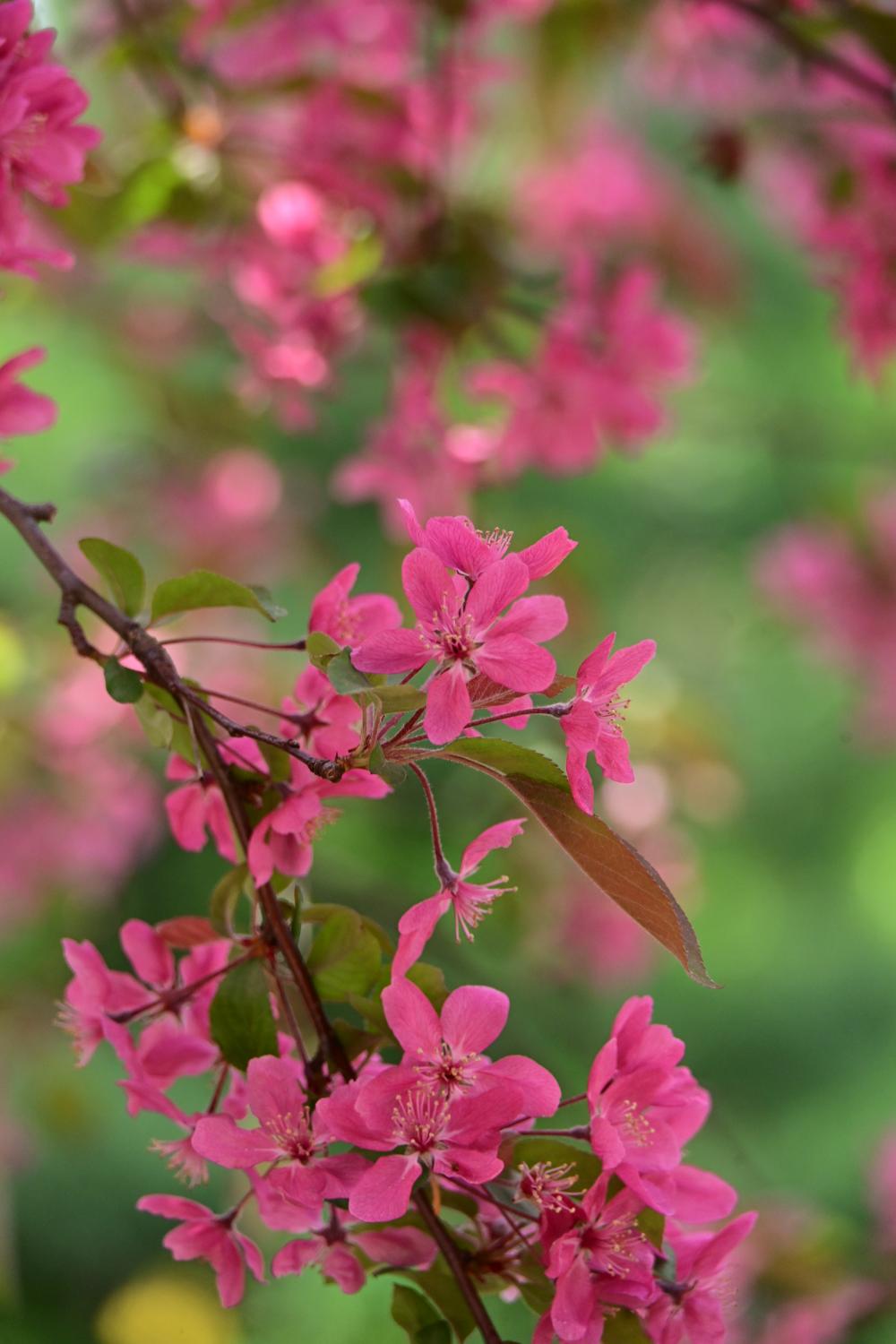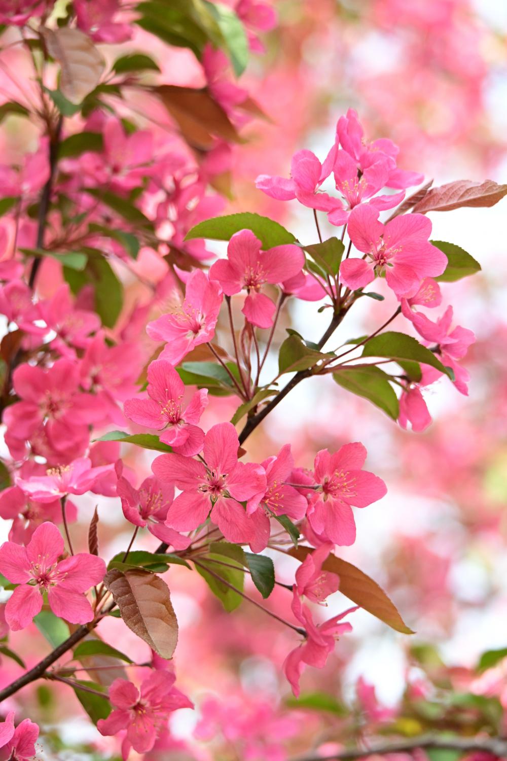 花瓣来自不同的花,其中就包括绚丽海棠,也叫北美海棠,是这条海棠大道上的主力品种。