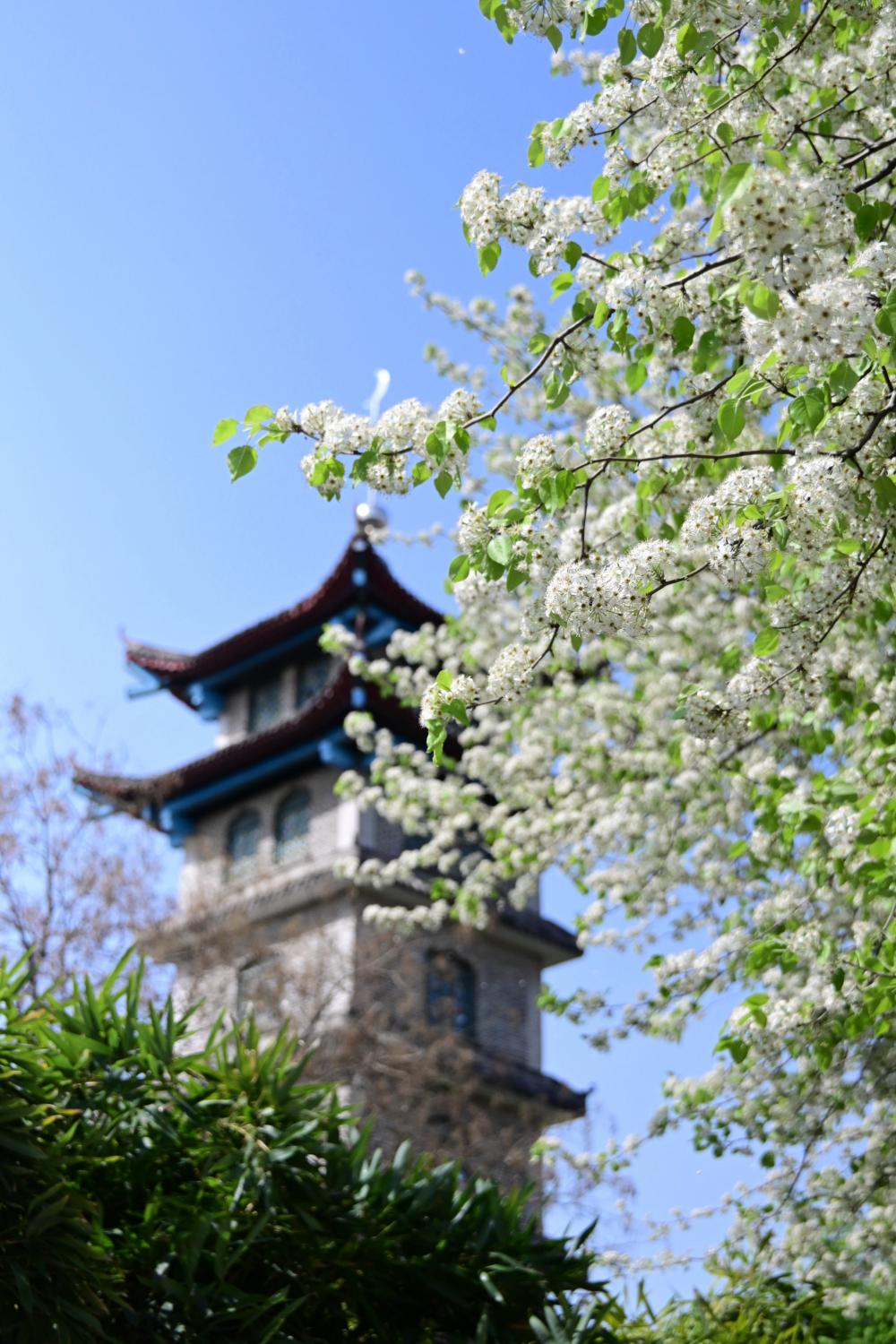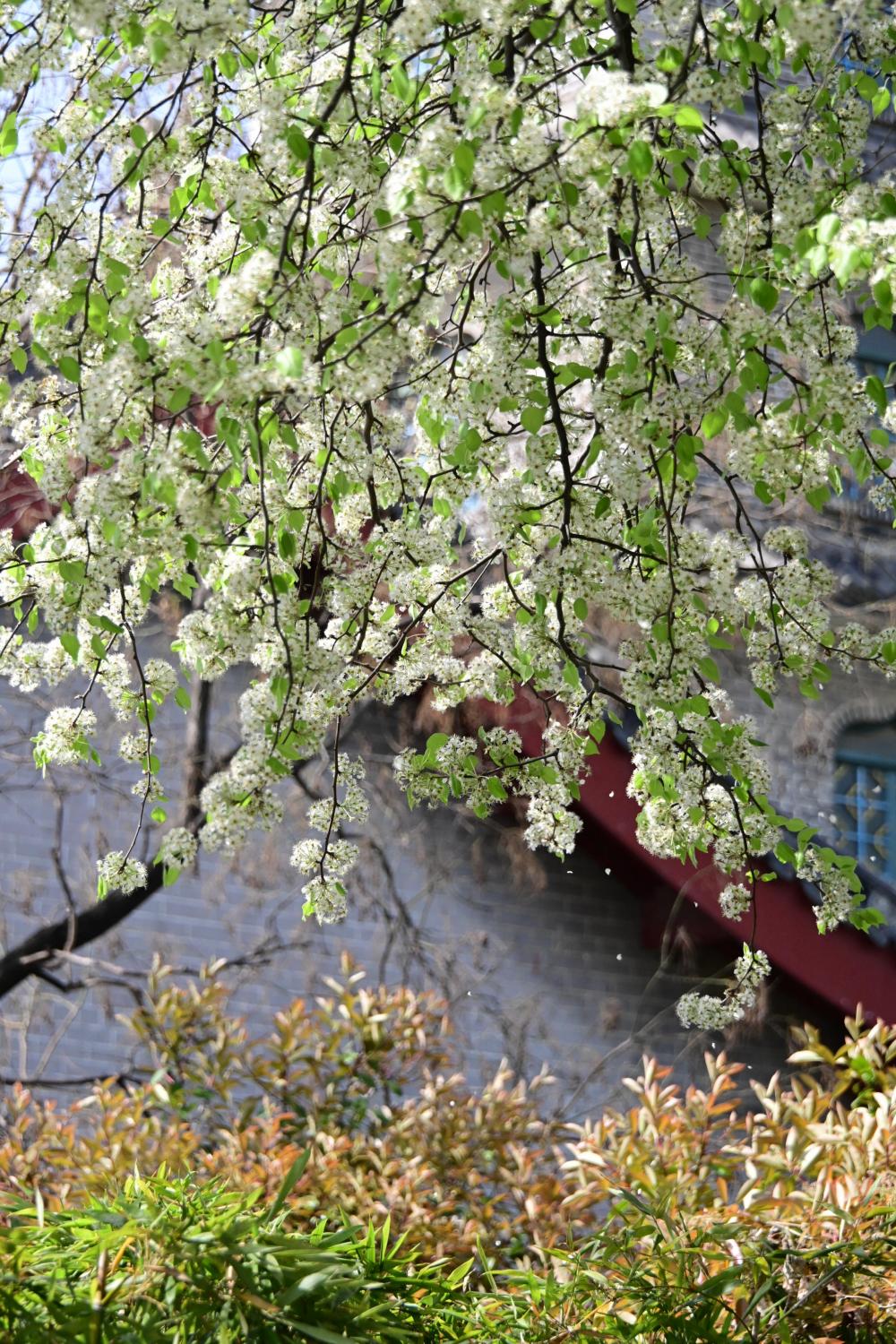 花枝轻垂,搭配着砖瓦,再次为古城的春天增添了亮色。