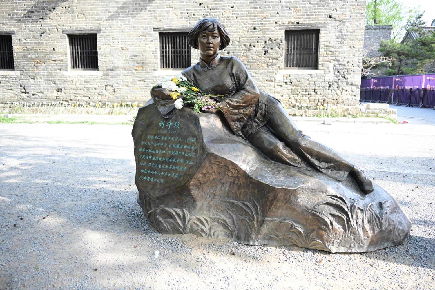 刘守玟烈士牺牲后身份长期无法确认,长眠鲁南战地。经过各地爱心人士、相关部门多方寻访查证,时隔66年后,身份最终被核实,忠魂得以回归家乡。雕像中的石块上镌刻着烈士完整的生平履历。