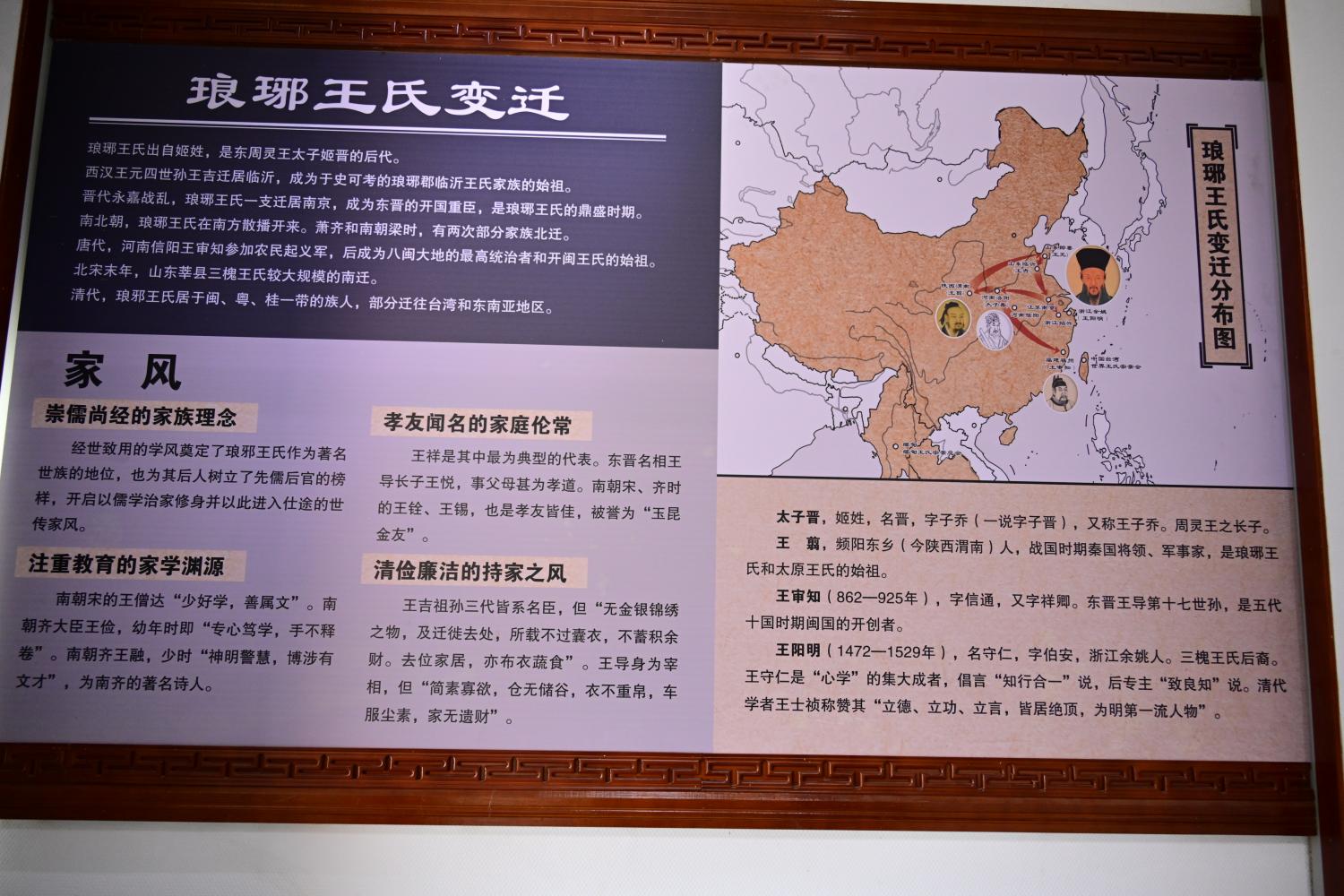 展板上,完整梳理了王羲之祖籍琅琊王氏,从临沂发源、全国扩散的千年迁徙历史,以及家族流传千古的优良家风与历代先贤,印证了临沂是这一中华第一名门望族的根源之地。