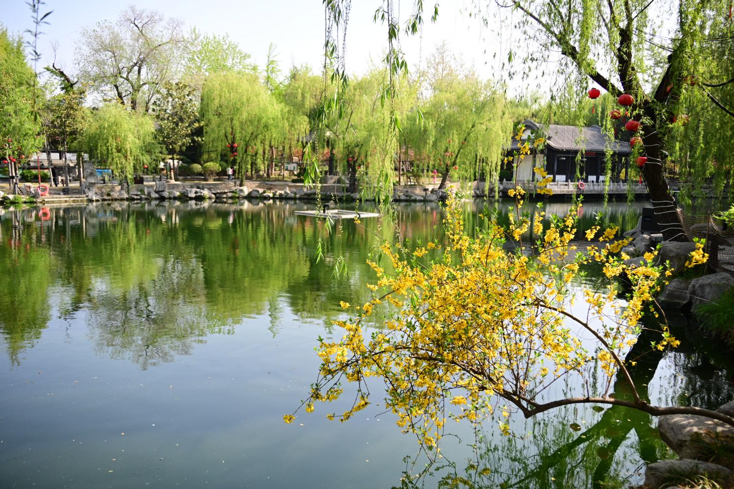 春日的洗砚池边,一派花黄柳绿,春意盎然。