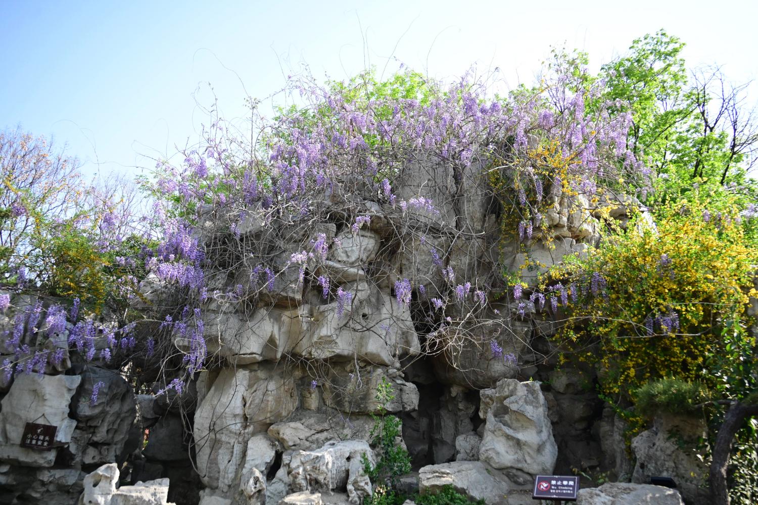 也有假山,上环紫藤花。