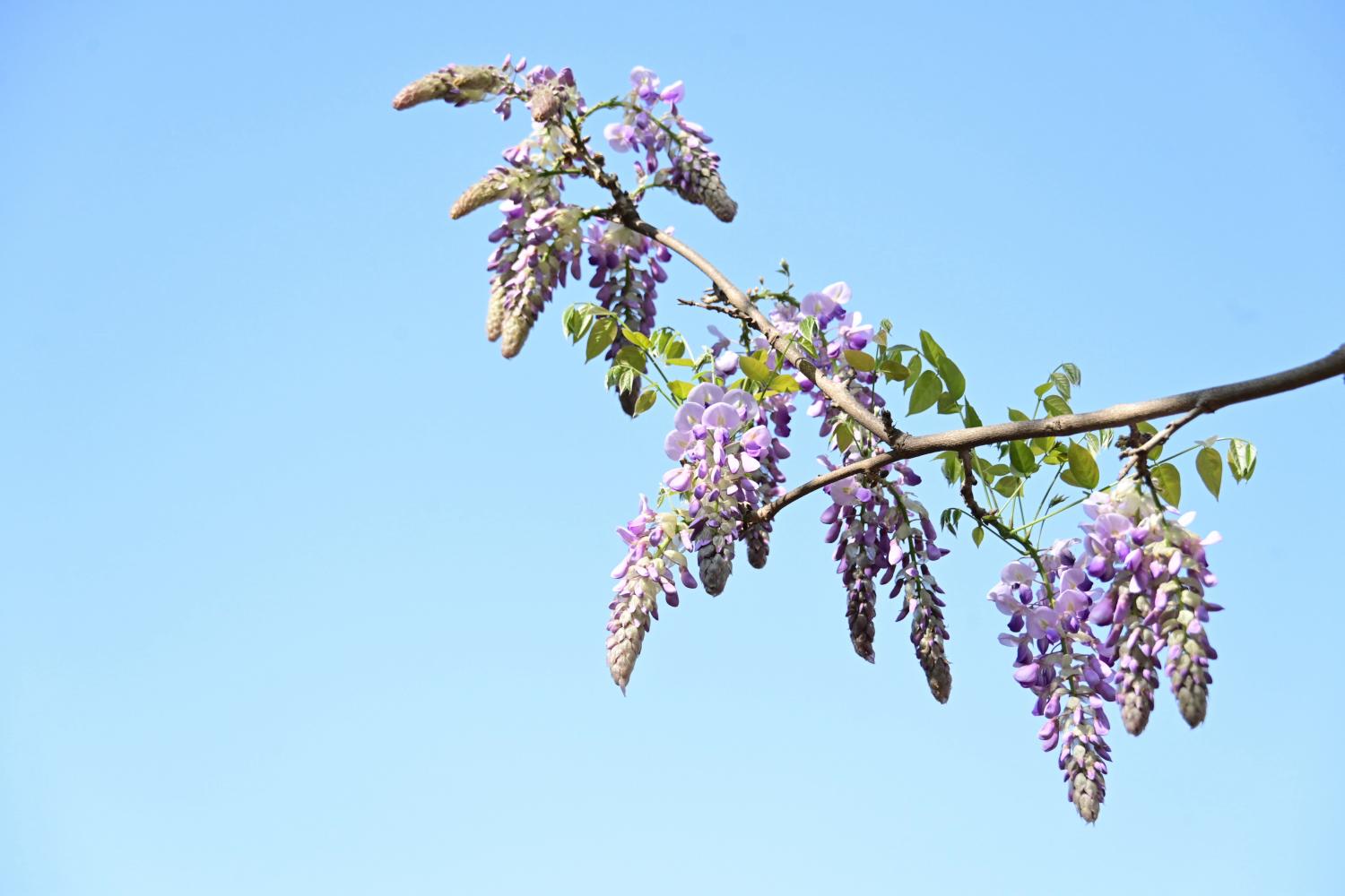花朵成串下垂,如紫色瀑布。