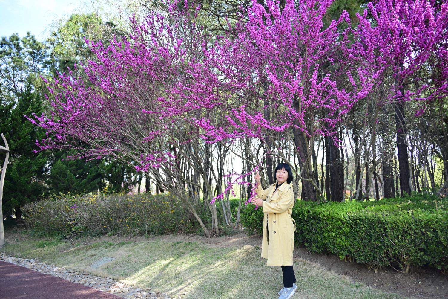 鼋头渚到不了,但日照植物园可以啊,还真是想什么有什么。春日里的氛围感,顿时被拉满了。