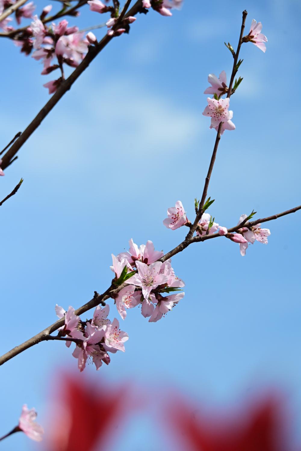 拍桃花,也把天空拍得很蓝。整体感觉山东的天空没那么蓝,远不及图片中的这般瓦蓝。