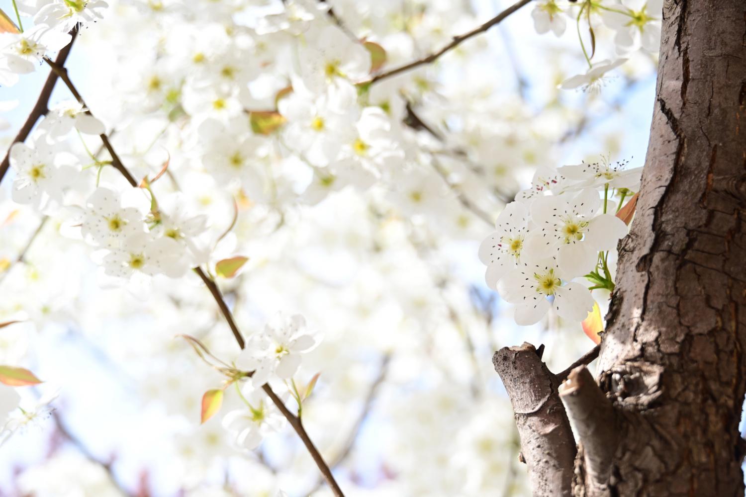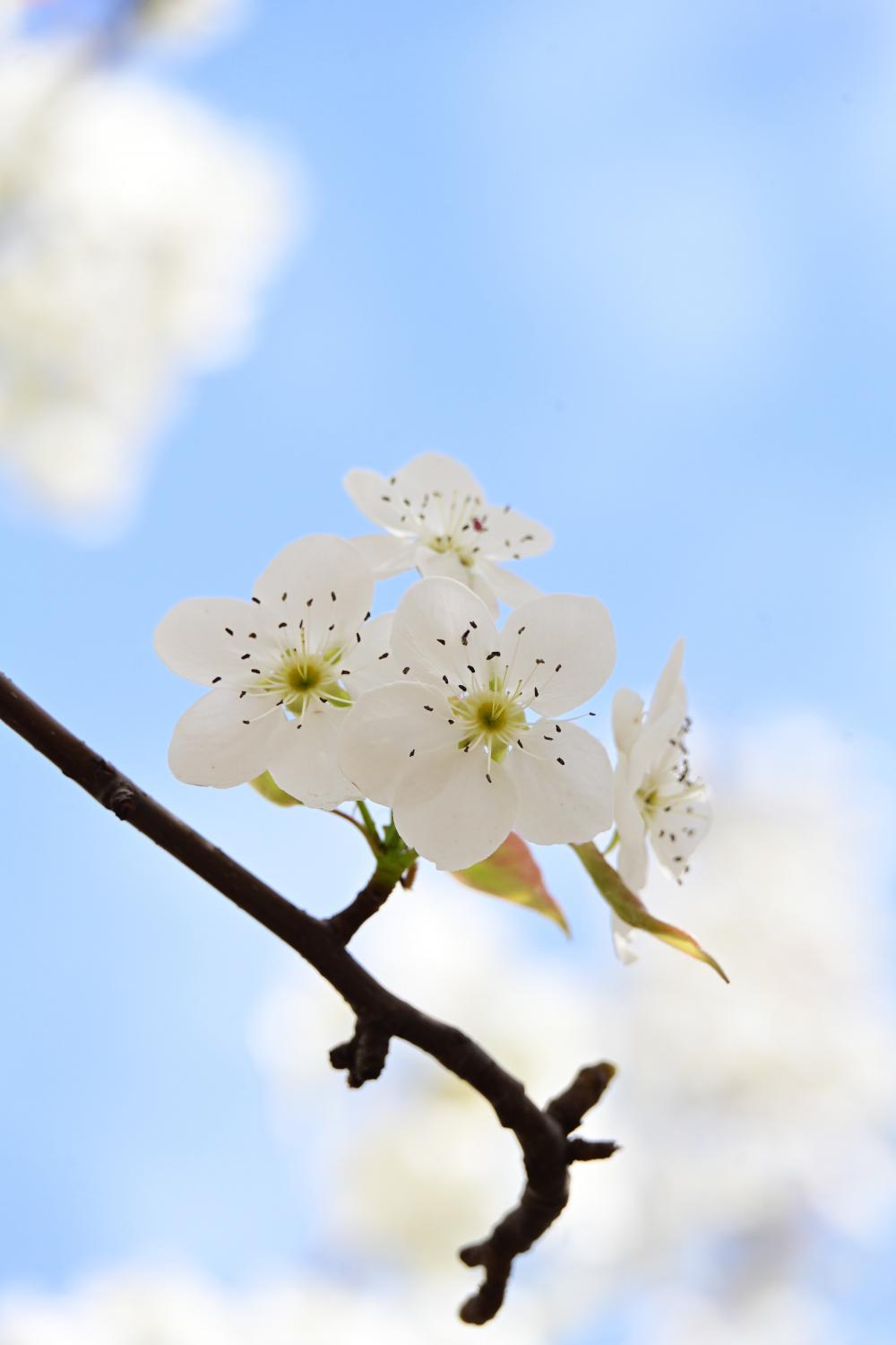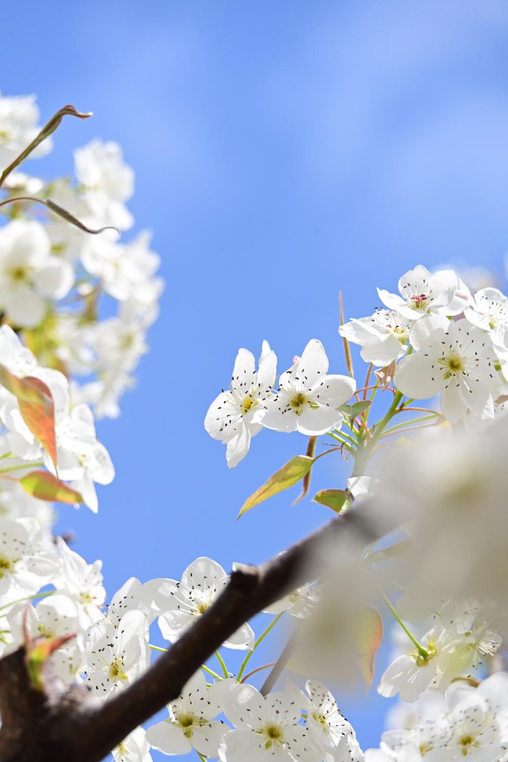 花朵特别白,横扫之前将花枝拟做的白雪,这棵梨花才真的洁白如雪。