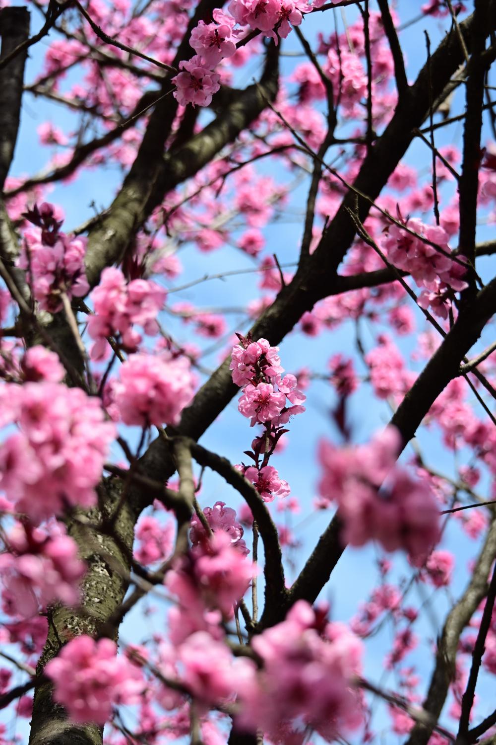 按理来说,桃花的花期早,应该已经过了,此时却开满了一整树。