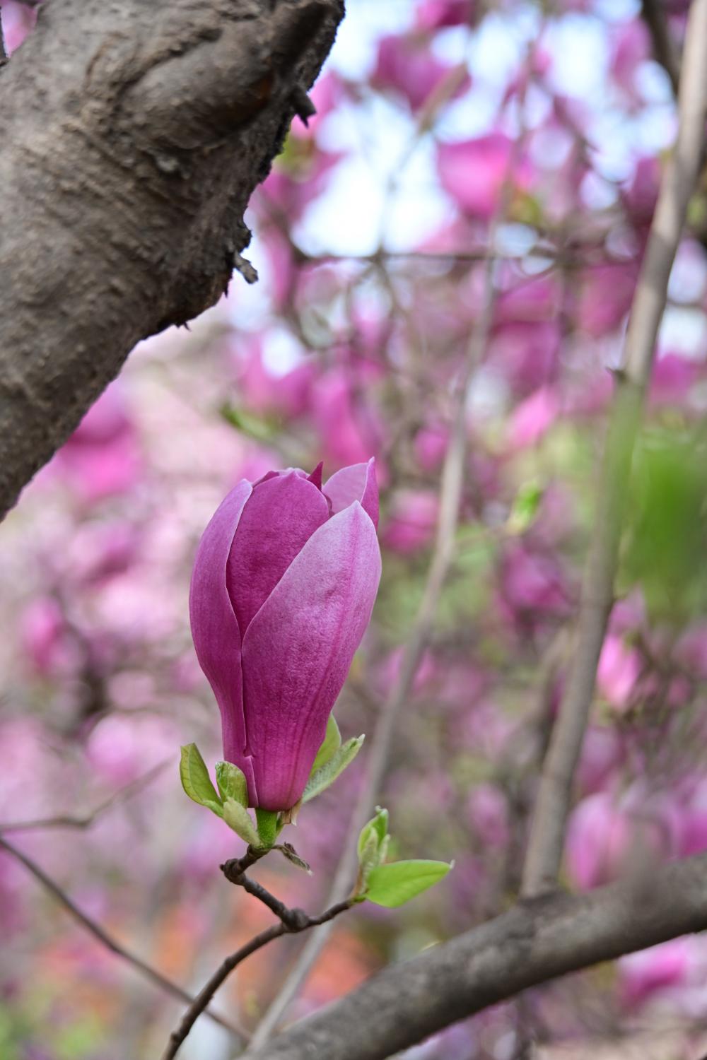 停车场边,已经是大树大树的玉兰,令人猝不及防。