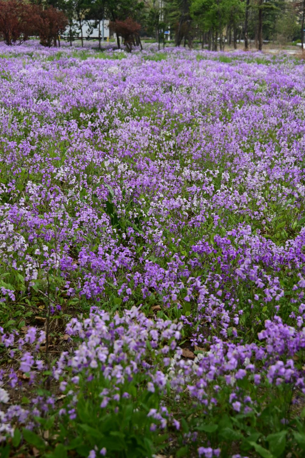 进了城,路两边全是二月兰,连续不断,是青州予以远方来客的大礼、大惊喜。