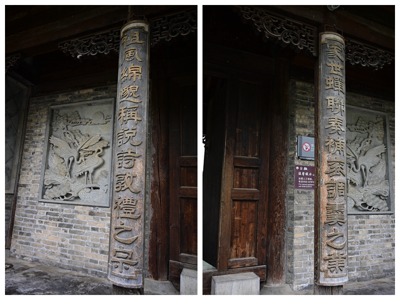 门前一对石狮分立左右,门两侧的砖雕为 “双鹤祥云” 图案,寓意吉祥,也是清代官宅的常见装饰。