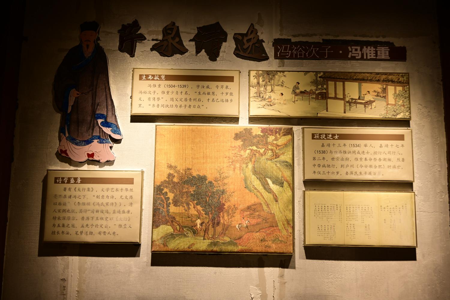 说回青州冯氏文学世家的始祖,也是冯溥的直系先祖冯裕。下图展板上介绍的冯裕的次子冯惟重,也就是冯溥的曾祖父,是 “一屋三进士” 的第一位。