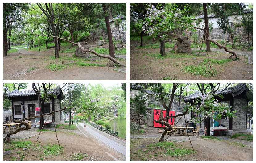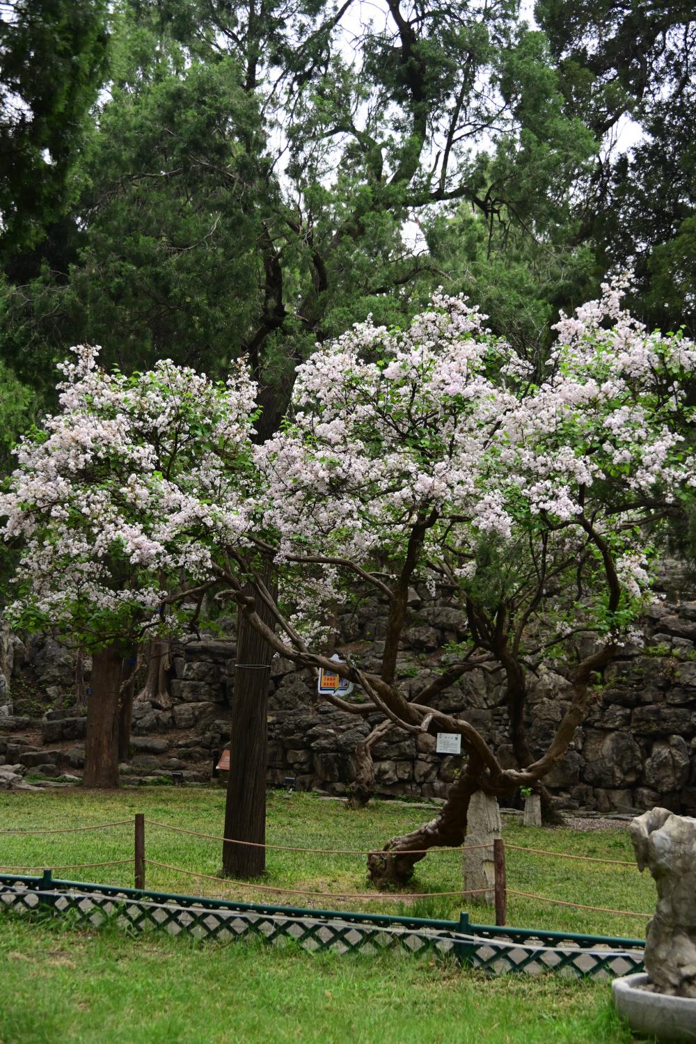 偶园里的这些丁香都是百年以上的古树,树干盘虬卧龙,很多枝干已经出现老化、中空、木质腐朽的情况,自然承重能力大幅下降。尤其是开花时,满树繁花会给枝条带来巨大的重量,若再加上雨水浸润,很容易压断脆弱的老枝。