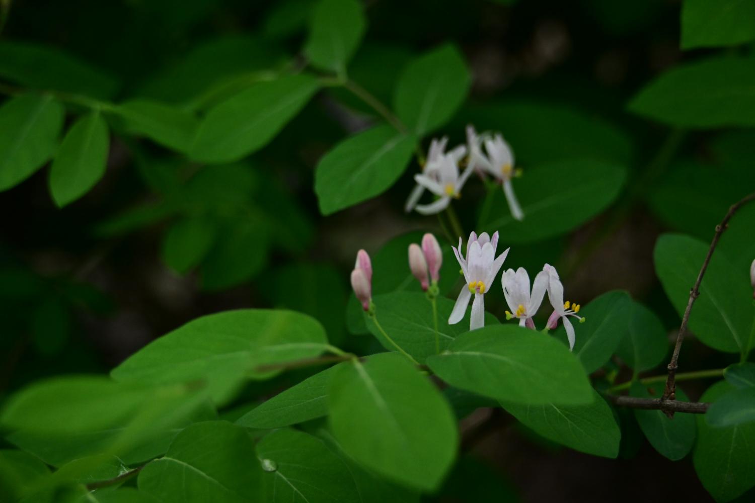 绿意却是不少的,其中也有开放中的小花,大概是新疆忍冬,与金银花同属于忍冬科忍冬属植物。