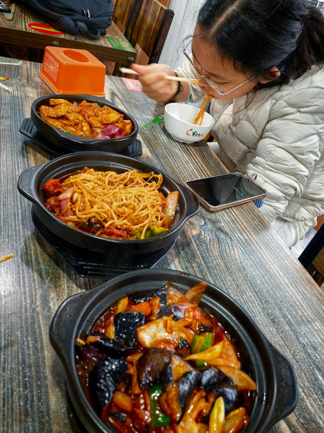 看时间,已经不充裕,因为衣襟还有网课要上。所以放弃即将到手的美味大餐,改为正在经过的小店,随便点了三只砂锅,只要50几块,美味且实惠。