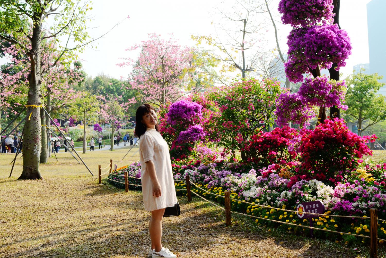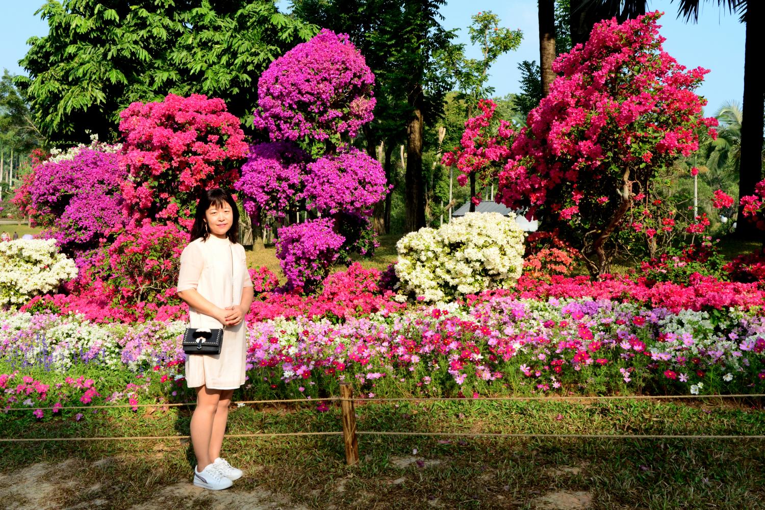 围起来的花圃里,全是盛放中的簕杜鹃,不知道它们到底是如何把自己乐成那样样子的,简直就是美翻了天与地。