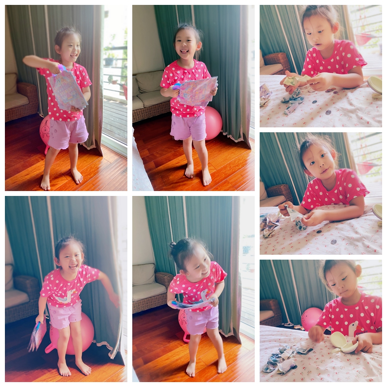 说实在的,做为六岁的女生,衣襟的处理能力是很差的。对梳头,完全摸不着门路,真发愁上学了午睡后没人帮忙梳头下午会是什么样的情况。不会自己洗头,完全接受不了洗头时脸上会有水流的事实。刷牙,心情好了就刷得主动又仔细,心情不好时就应付那么几下。穿衣,也是不讲究前后反正的,穿上就行,早上甚至还要大人帮忙,因为太磨蹭,完全没有时间观念。吃饭,会掉很多很多的饭粒,汤汤水水的,更是无法保证不洒。自己产生的垃圾,没有丢进垃圾筒的概念,脱下的衣服也是哪脱哪搁。上完厕所,还会忘记冲水。用过的pad,屏幕一定是粘乎乎的……如此粗枝大叶的女生,成长的路,且长着呢……