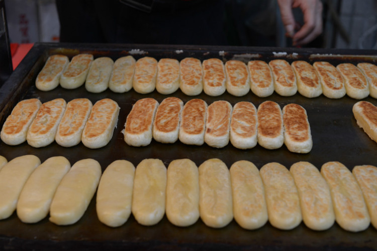 1、这家的馅饼实在太诱人了,煎得热烫烫油汪汪的,让肚子里已经没有空间的小宽和我站在一边看了很久很久。