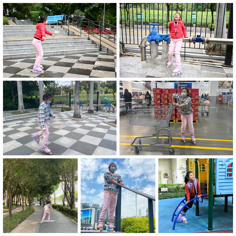 说回网课第一天的中午,衣襟拒绝午睡,更愿意到楼下去晒太阳,轮滑鞋又成了热宠。