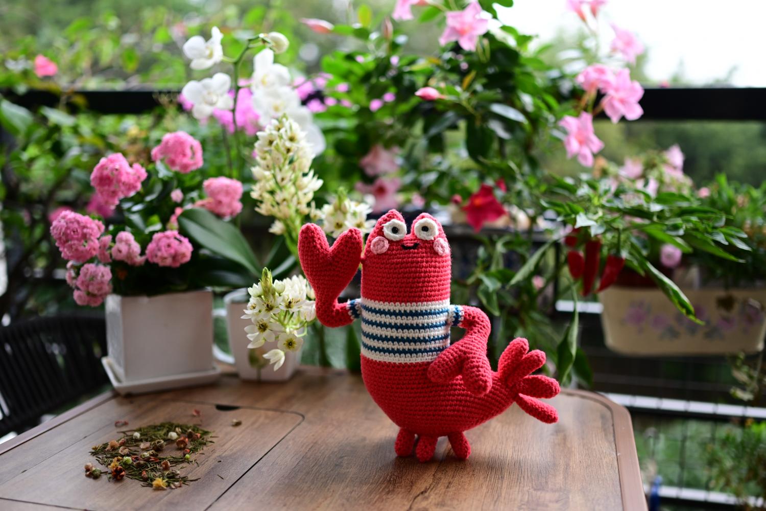 龙虾通体透红,带着两组剪刀手,一副调皮的样子,很讨喜,所以被衣襟看中,一再要求被安排入日程,主体色也是衣襟指定的。