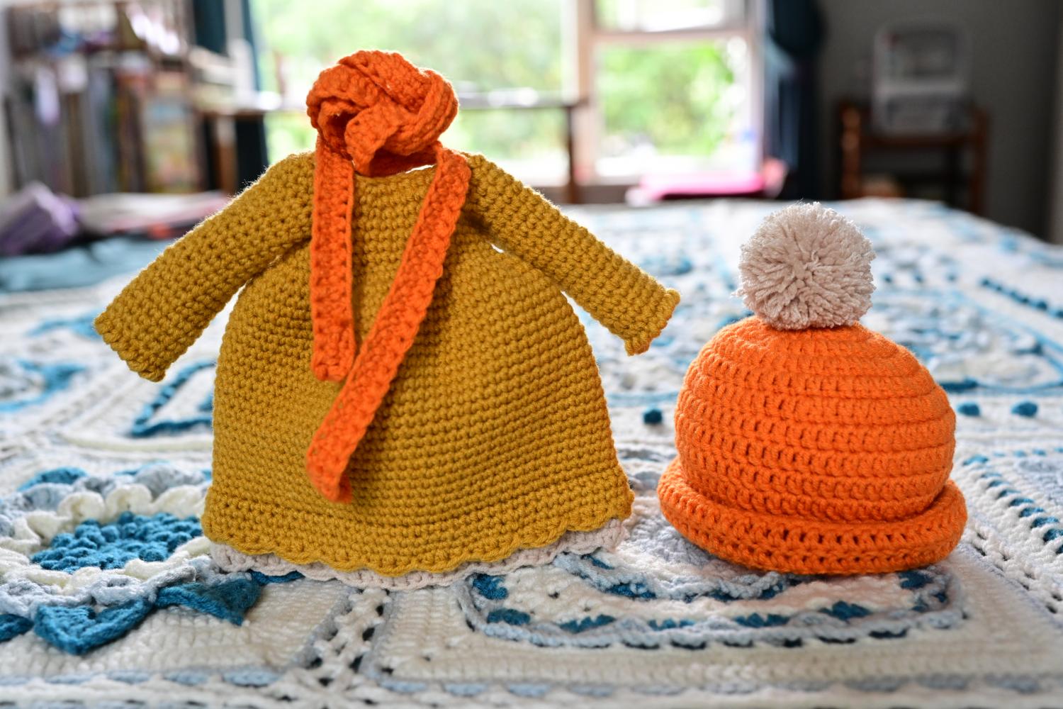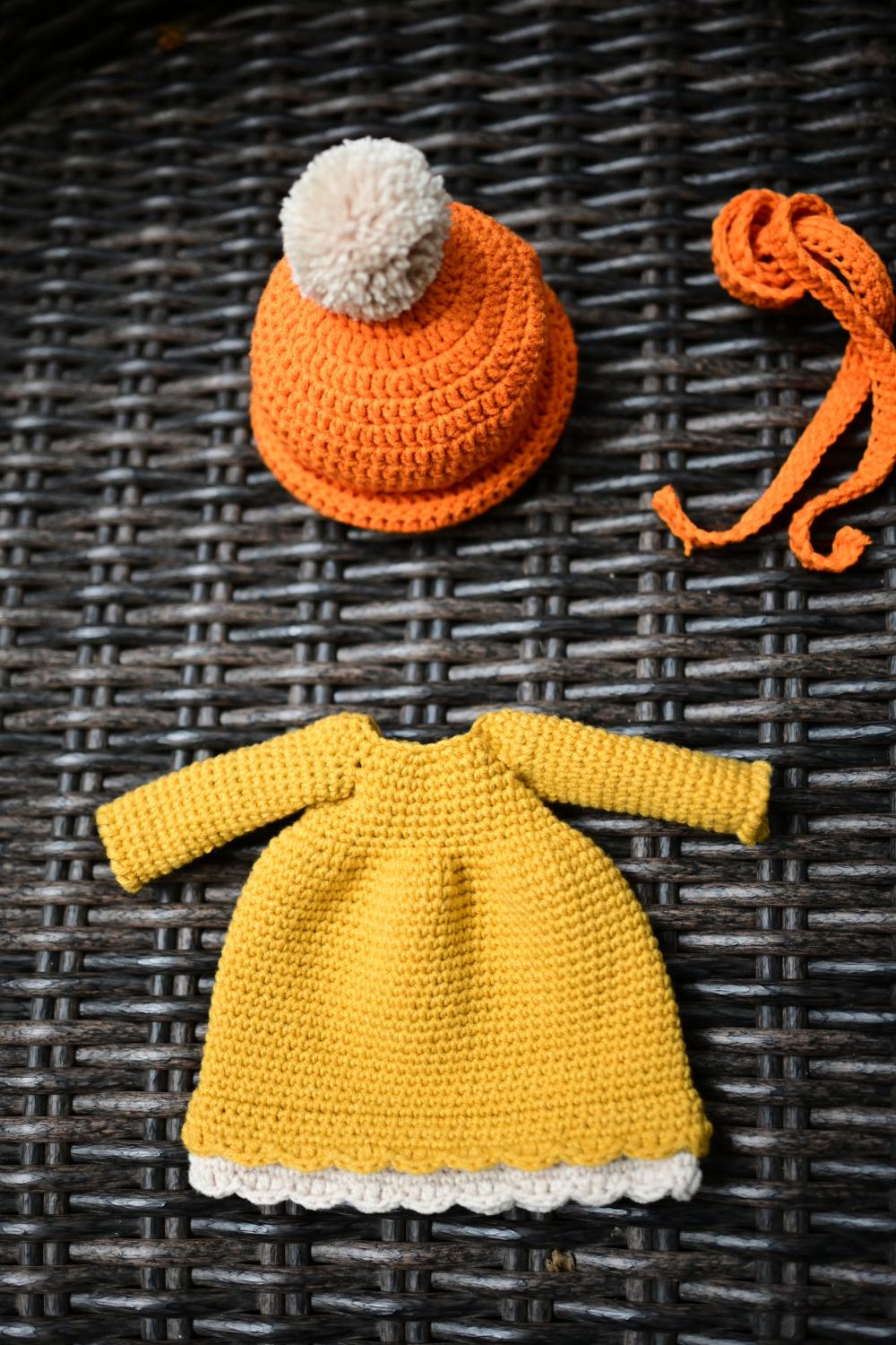 第二只,来自Susan7ss家的图解。还是女生,这次穿的是黄色裙子,帽子是橙黄色的,配同色围巾,整体装扮很秋天。