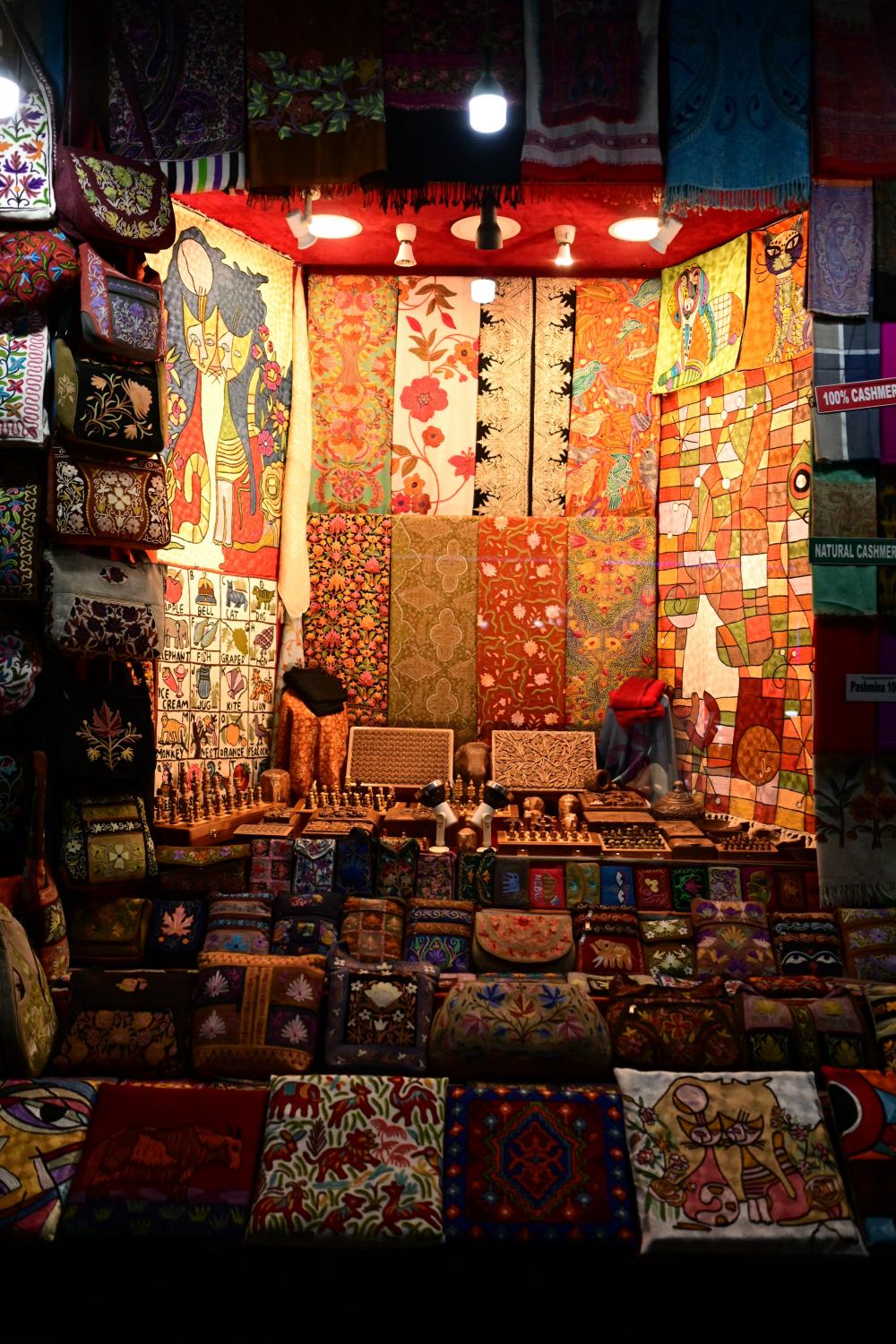 还有好看的布,以及用布做成的包包,件件精美,看得心痒。