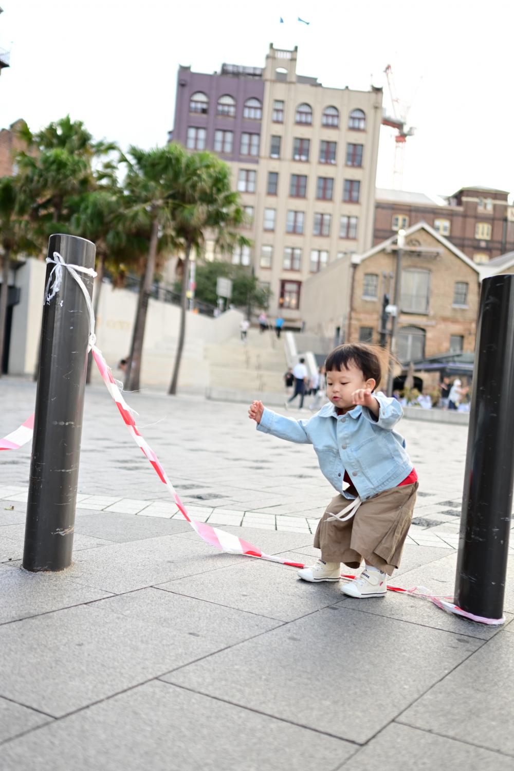 走在街上,孙儿像所有淘气的小孩子一样,爬上爬下的,又知道注意安全,细心、不莽撞、有分寸。