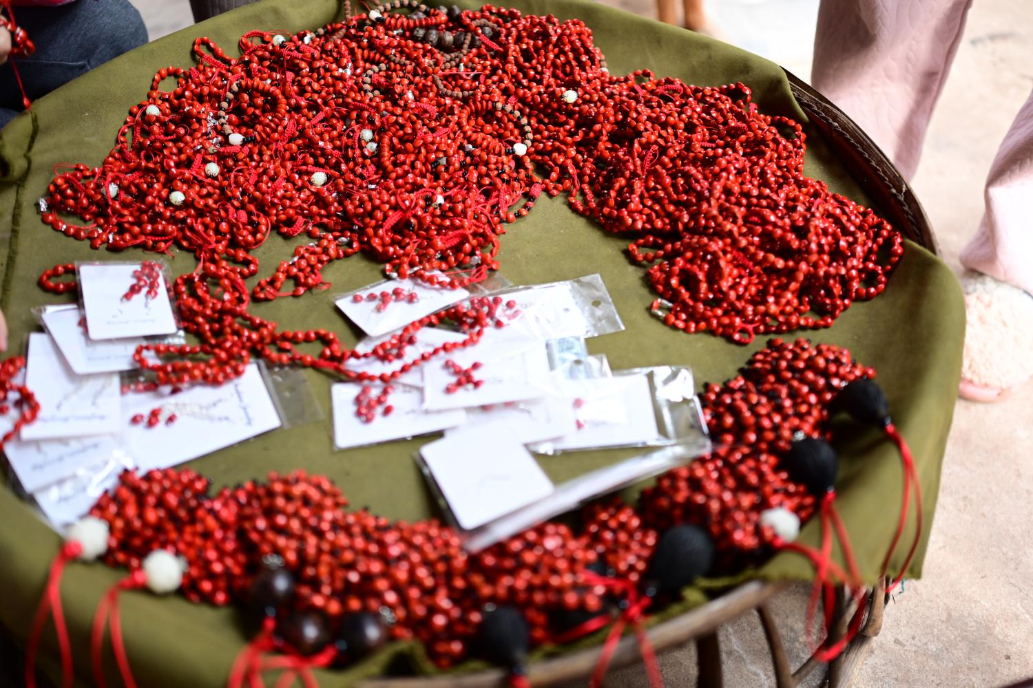 村长家也有用红豆串好的饰品卖,深圳家长出手阔绰,痛快地帮衬了生意。