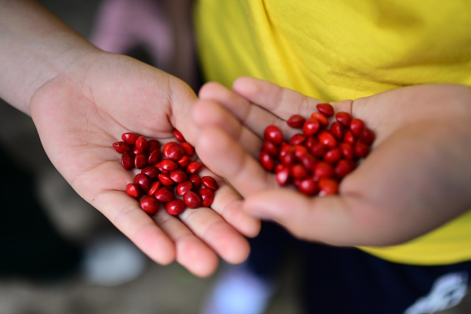 领队还找到三色的泥巴,蘸在手指上,从孩子们的脸上划一下,就成了土著脸,且提升了雨林的神秘性。