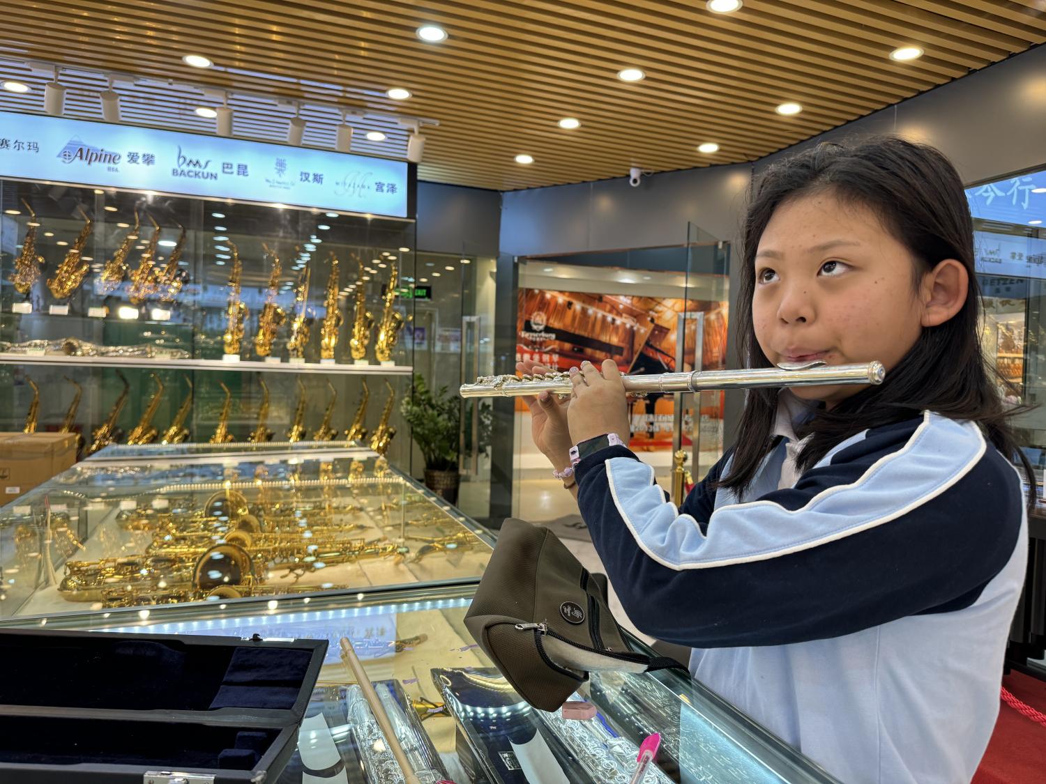 长笛有问题,特意跑了趟深圳乐器城去修。衣襟第一次进乐器城,看什么都新鲜。