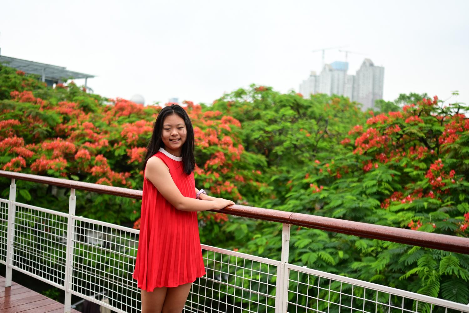 红彤彤的凤凰木下,还是感觉红衣,最是相衬。