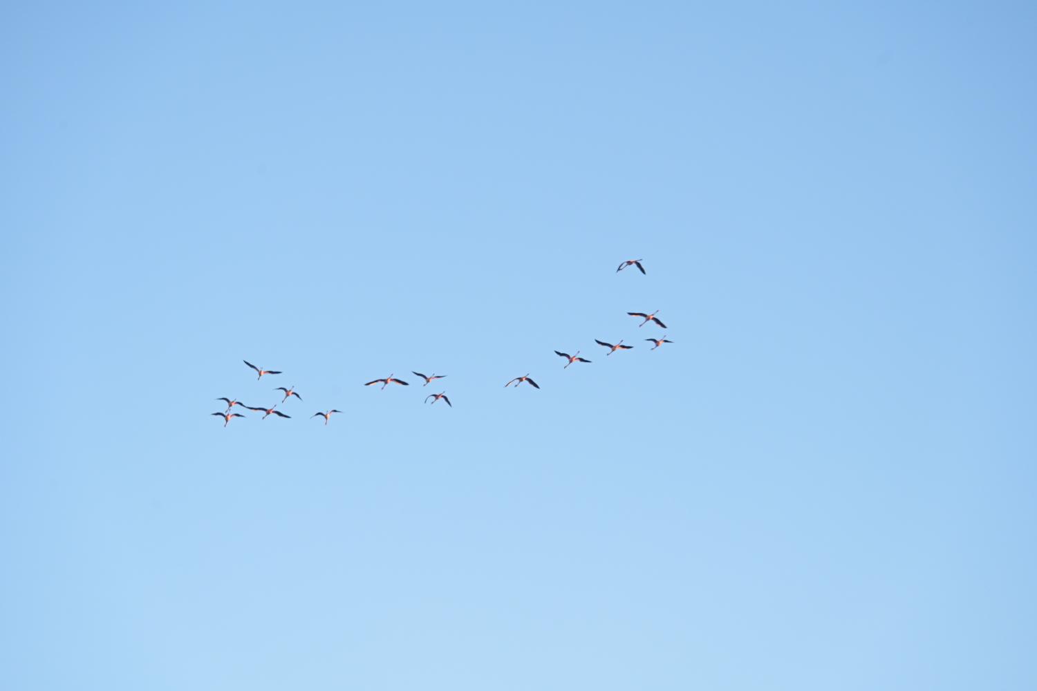 就算是坐在餐桌边,依然不时见到火烈鸟,成群地,结队飞过。