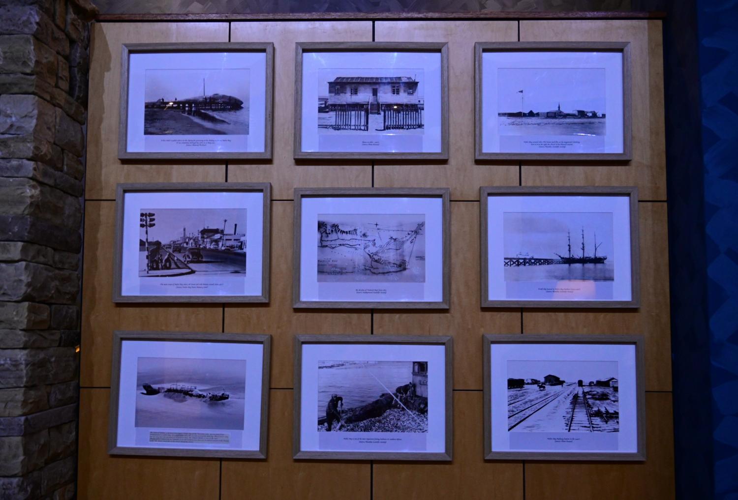 大堂的墙壁上,抢着的旧照片,讲述的正是鲸鱼湾之所以名为鲸鱼湾的历史。