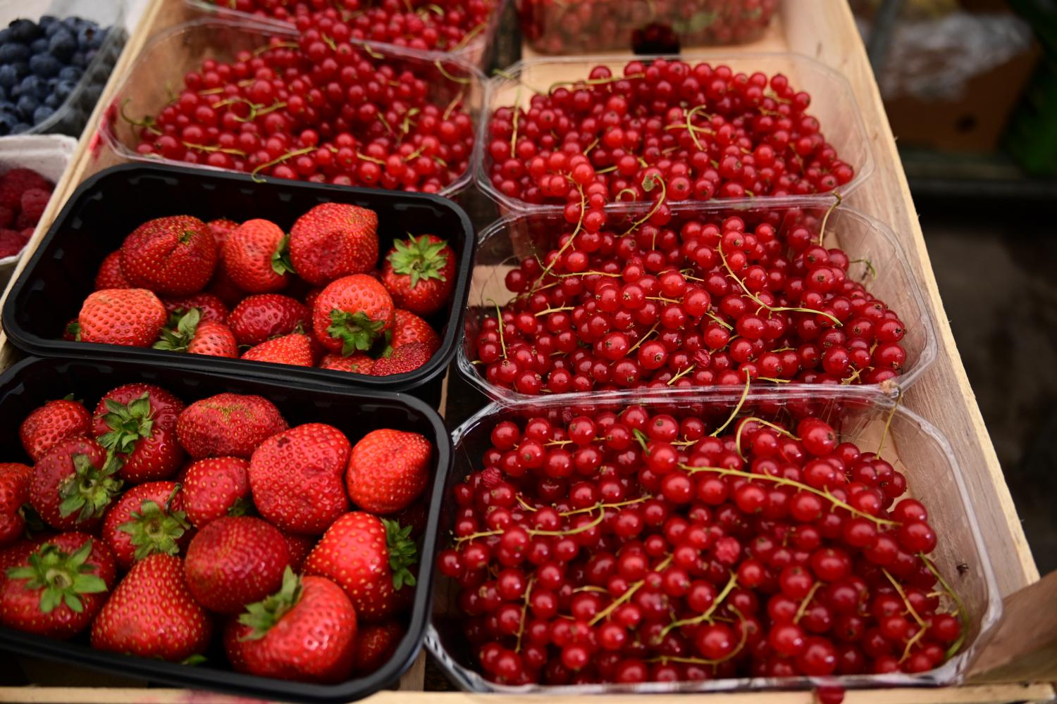 水果更是多见,最能引起注意的,还是小小颗却红得耀眼的红醋栗,圆润晶莹的红色小浆果紧密排列,色彩鲜亮、形态饱满,太让人稀罕了。