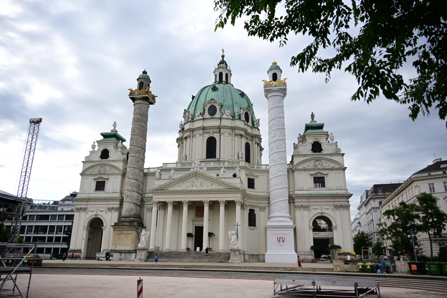 1713年,维也纳遭遇黑死病即鼠疫肆虐,大量民众丧生,相关信息在行程第二天经过黑死病柱时有细说。神圣罗马帝国皇帝查理六世许愿:若瘟疫退去,便建造一座以自己的主保圣人圣查理・博罗梅奥(St. Karl Borromäus,16 世纪意大利主教,因照料米兰瘟疫患者受尊崇)命名的教堂。