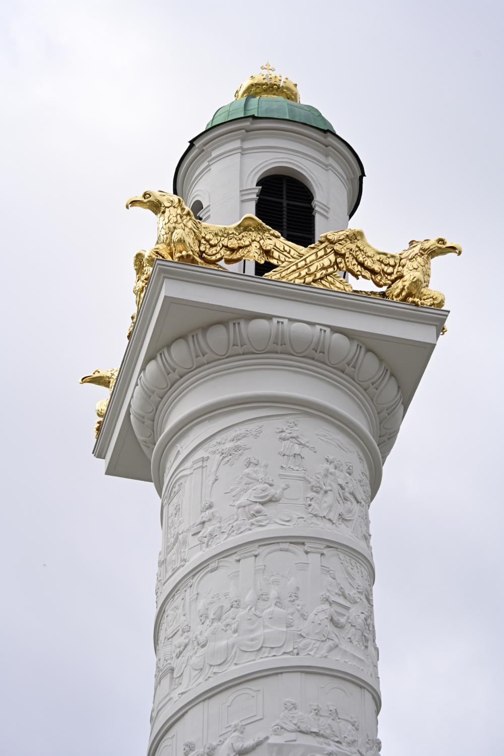 瘟疫结束后,皇帝实现承诺,于1716年启动建筑竞赛,约翰・贝尔纳德・费舍尔・冯・埃尔拉赫的设计胜出,工程随之开展;1723年他逝世,其子约瑟夫・埃马努埃尔・费舍尔・冯・埃尔拉赫接手,于1737年完成教堂建造,直至1918年,都是帝国的守护神教堂。