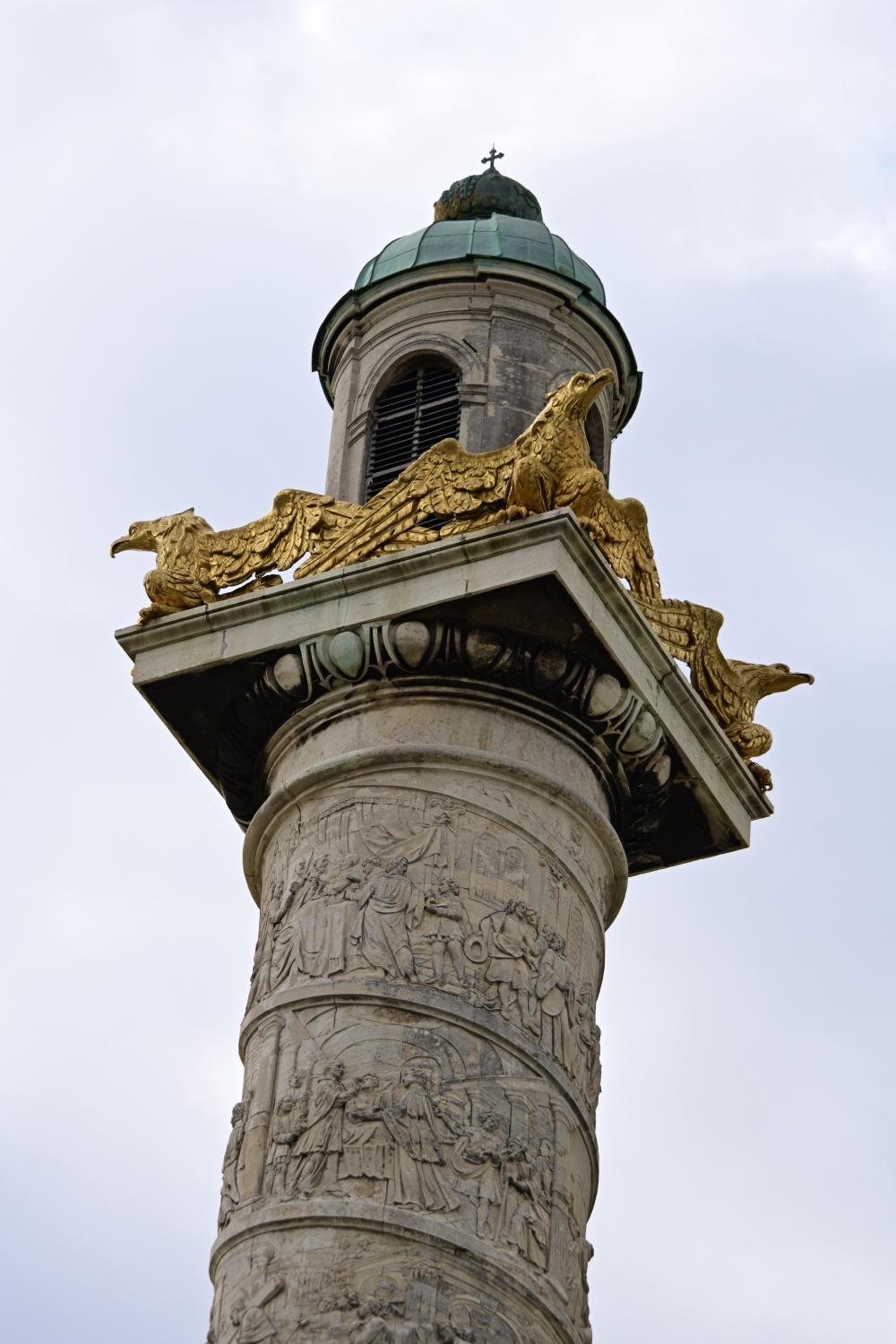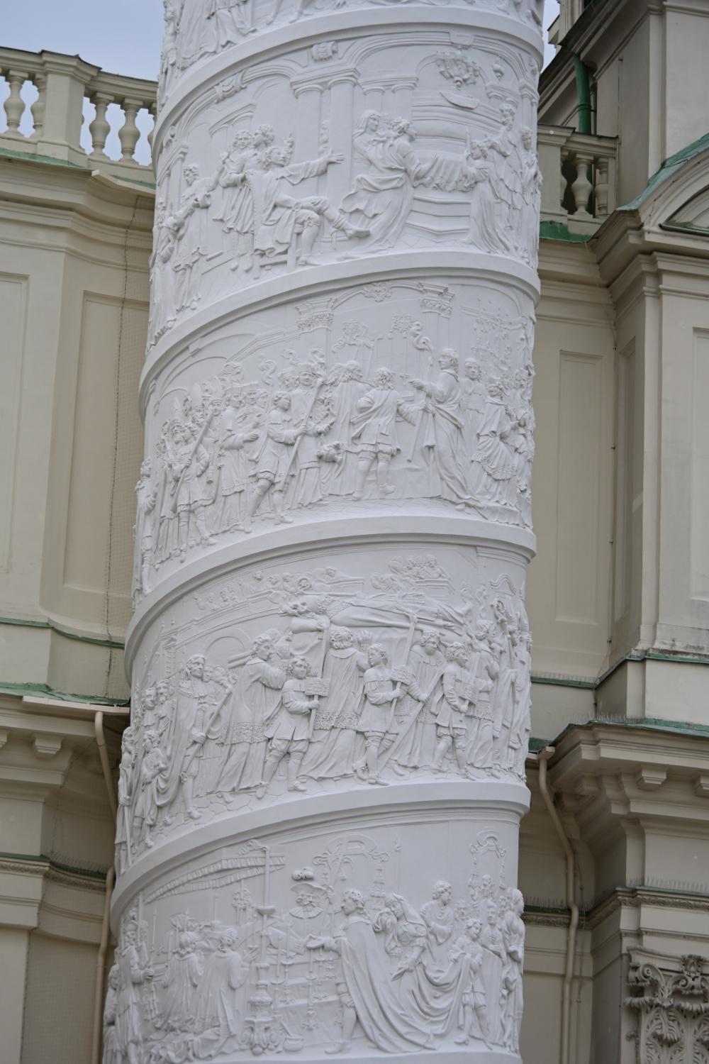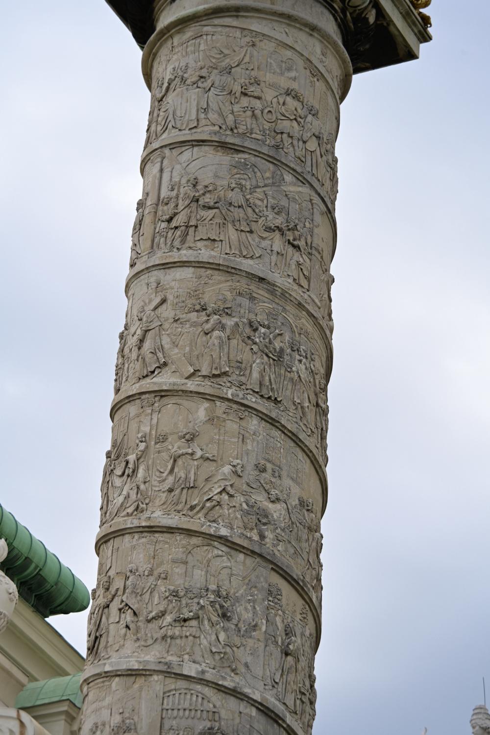 效仿罗马图拉真柱的浮雕形式的连续叙事性浮雕设计,核心内容围绕教堂的纪念对象圣查理・博罗梅奥的生平事迹与宗教贡献展开。