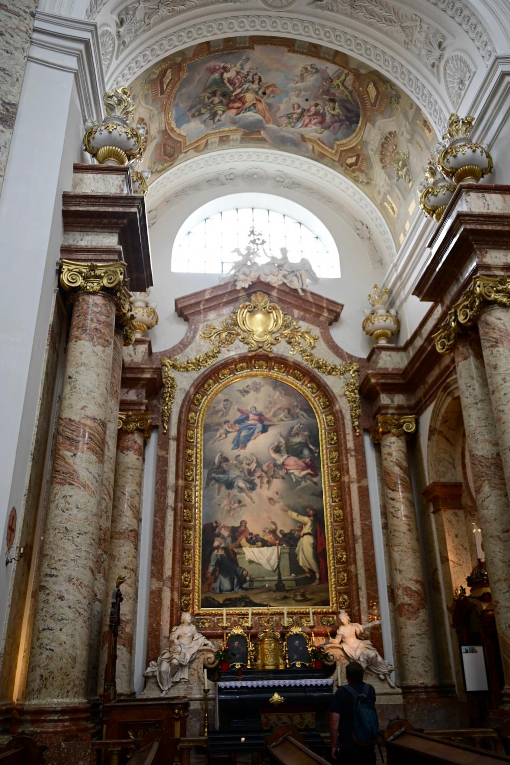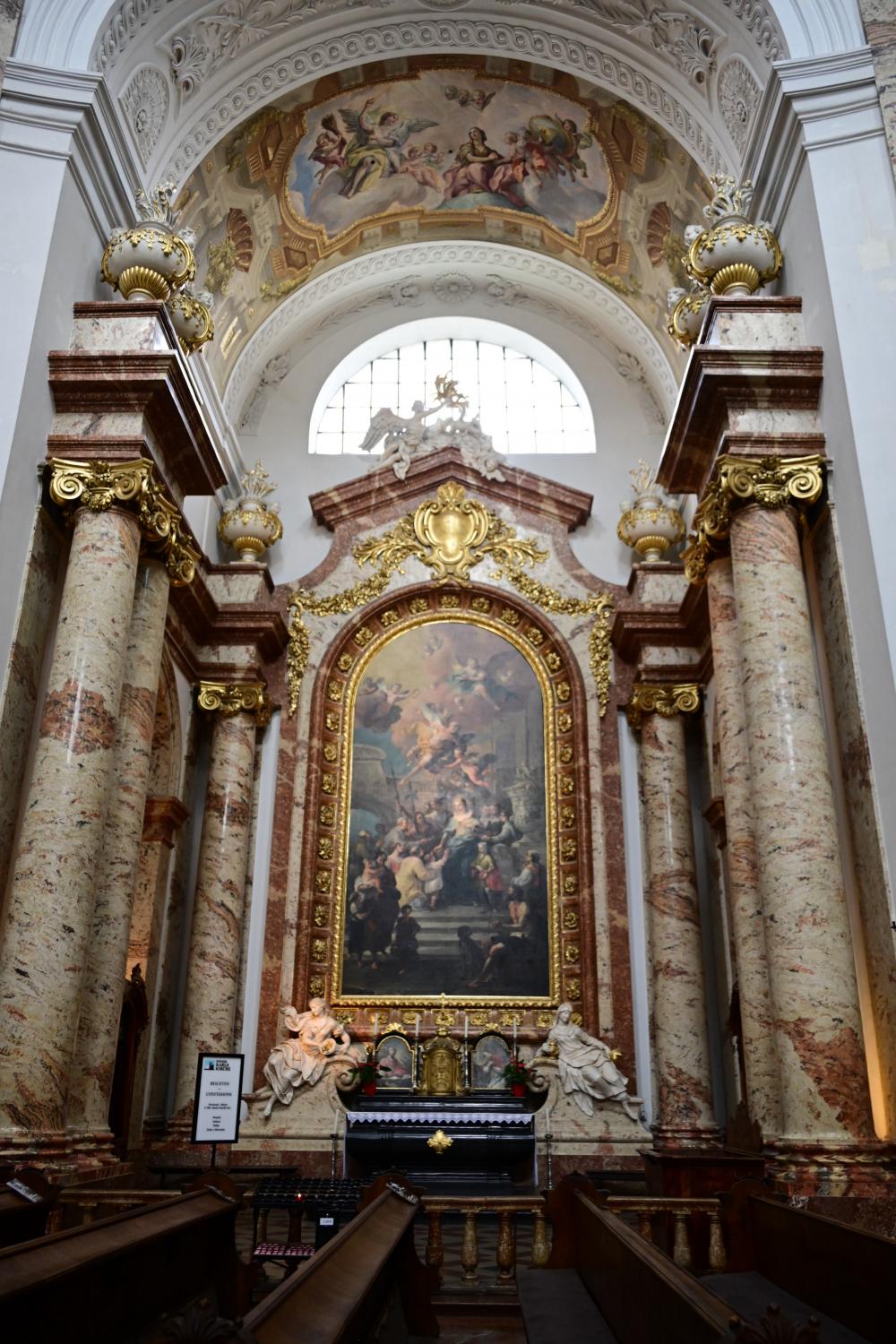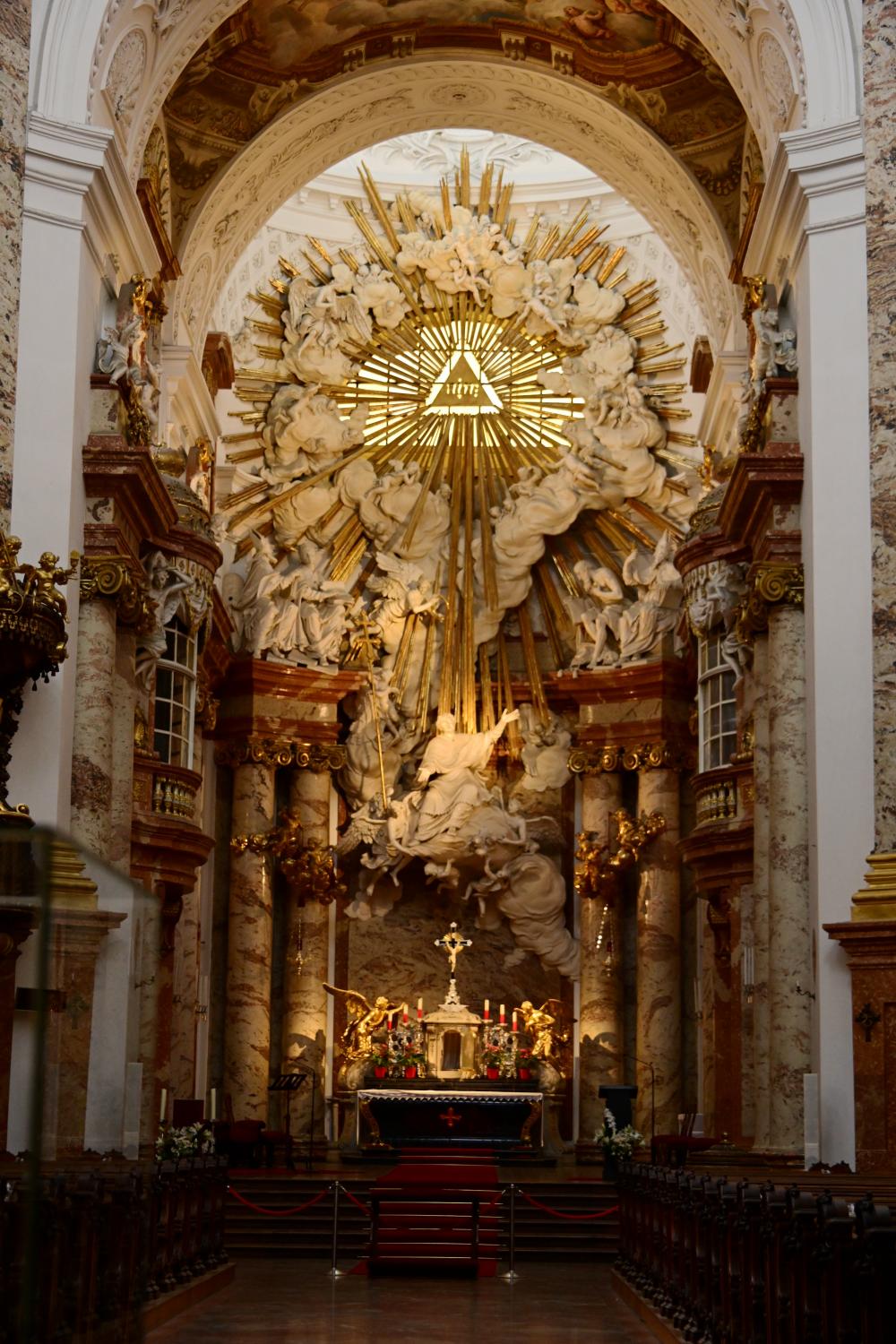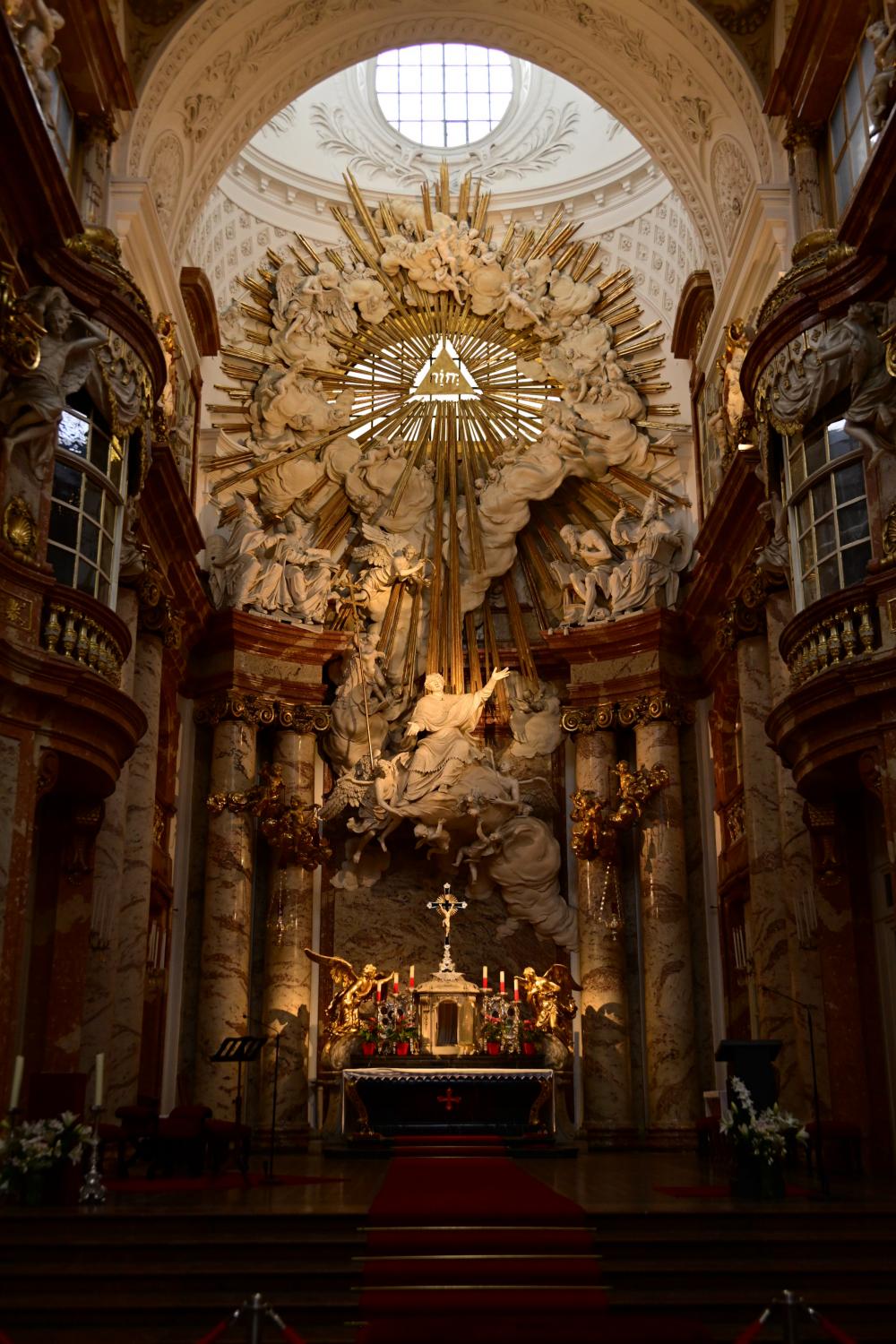由约翰・贝尔纳德・费舍尔・冯・埃尔拉赫设计、雕塑家费迪南德・马克西米利安・布罗科夫制作,造型繁复华丽、充满动感与戏剧性,通过精致的雕塑呈现圣博罗梅奥在天使簇拥下升天的场景,上方有希伯来文 耶和华,从圆窗透入的光线则营造出上帝之爱洒满人间的氛围。