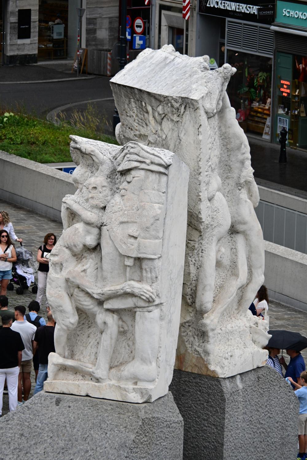 雕塑以第二次世界大战期间纳粹残酷迫害犹太人为主题,呈现出犹太人瘦骨嶙峋的身躯、绝望痛苦的姿态。