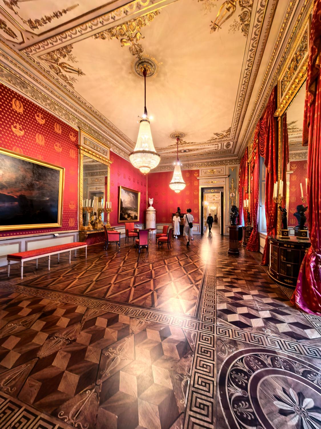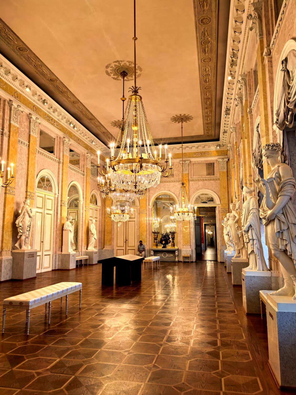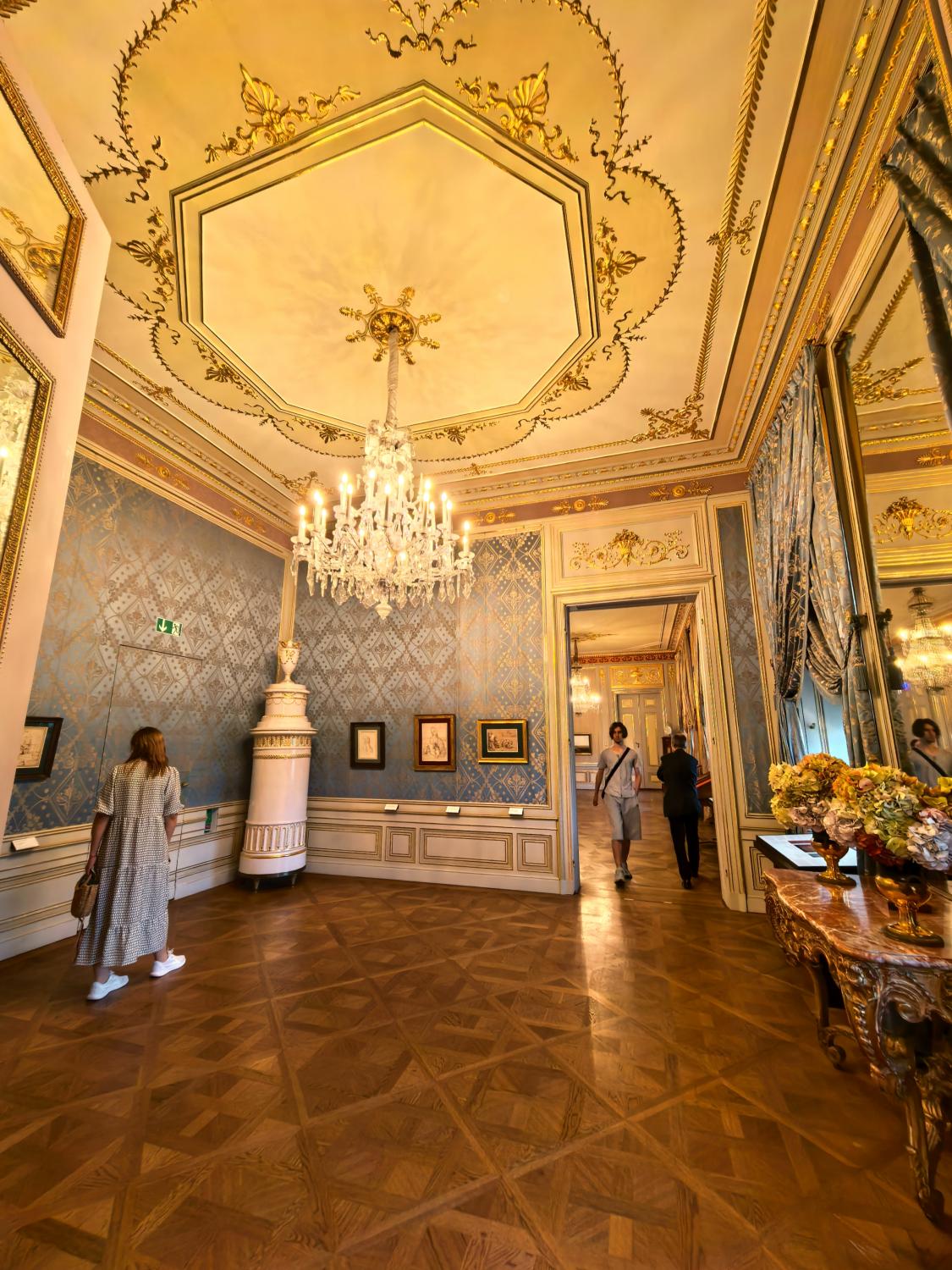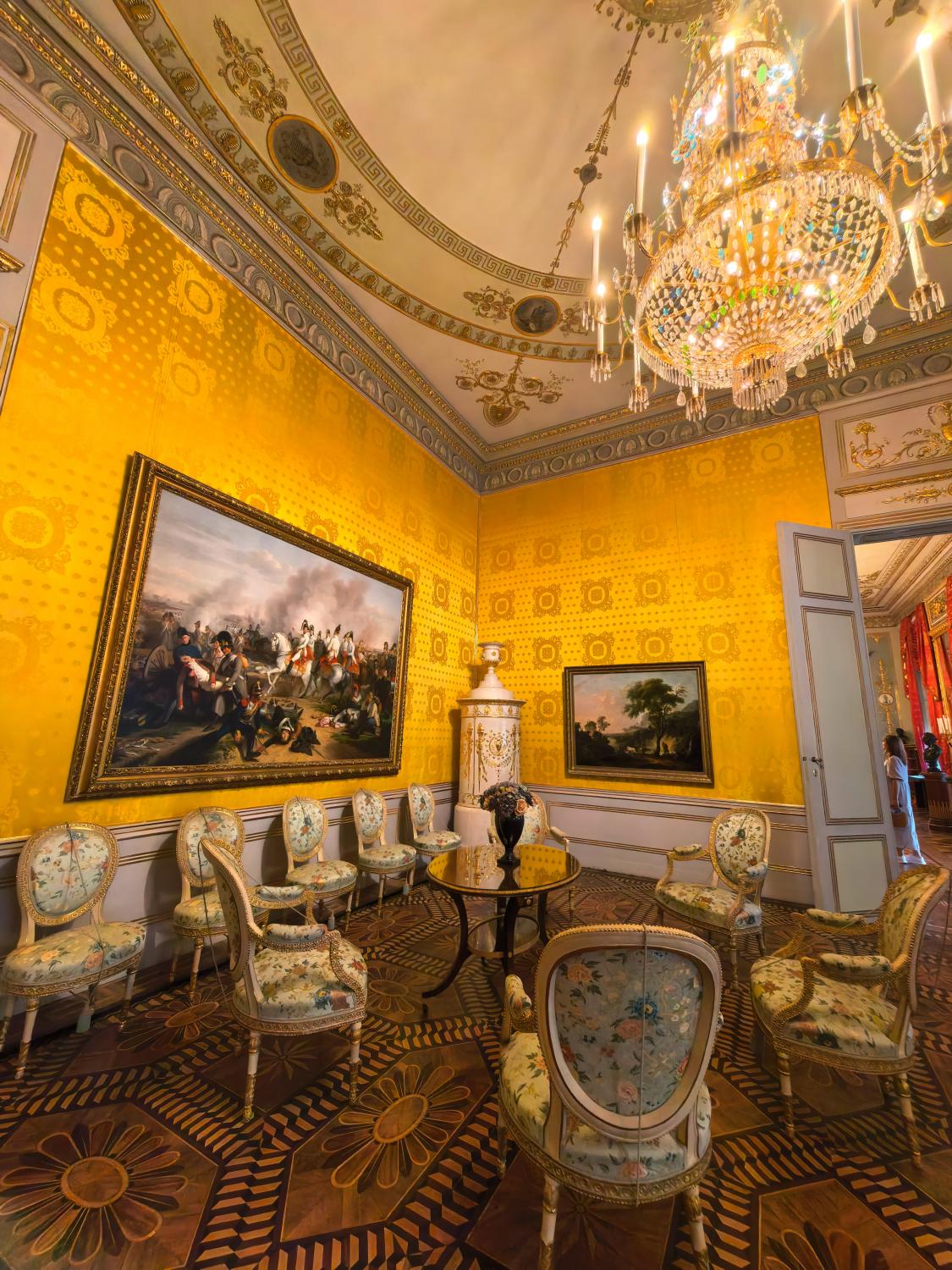 1794年公爵夫妇正式入住后,并未满足于初始规模,于是又委托建筑师路易・约瑟夫・蒙托耶对建筑进行大幅扩建。这次工程不仅拆除了周边的部分旧城墙,还将邻近的奥古斯汀修道院遗迹整合进了宫殿范围,进一步扩大了空间;同时对外立面进行重塑,采用对称的柱廊与山花设计,强化新古典主义的庄重感,内部则新增大理石柱廊、穹顶浮雕与路易十六式家具,让建筑既有皇室居所的奢华,又兼具新古典主义的典雅秩序,奠定了其核心建筑格局。