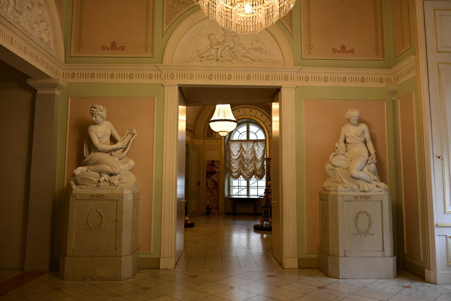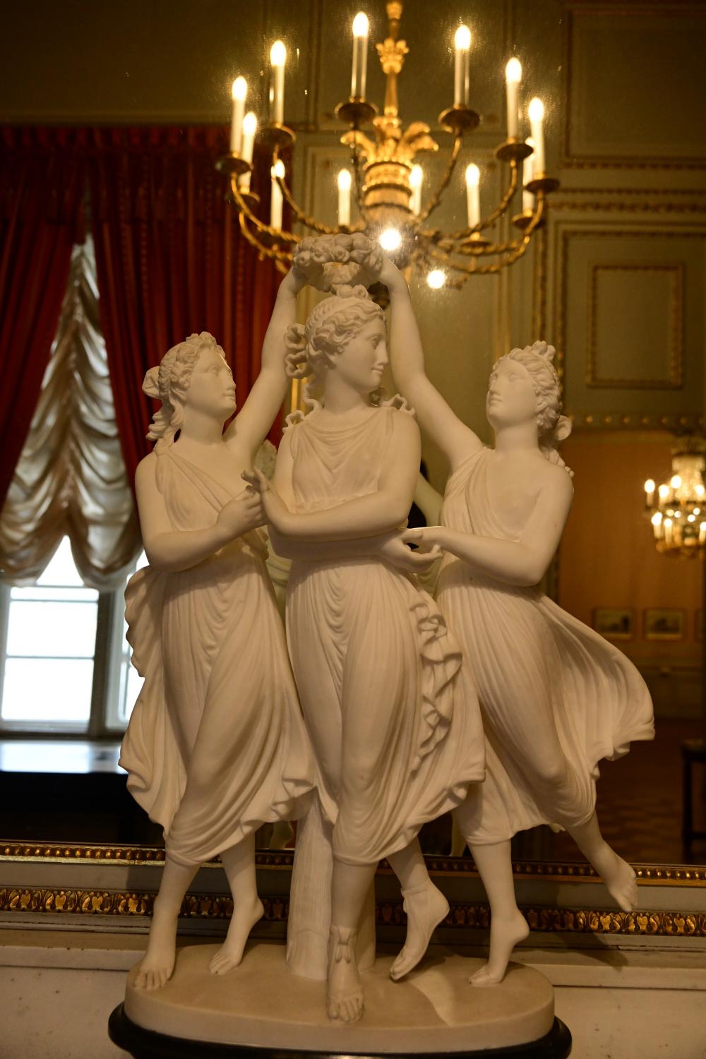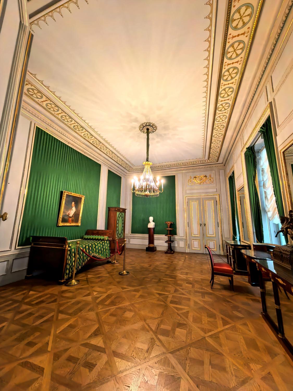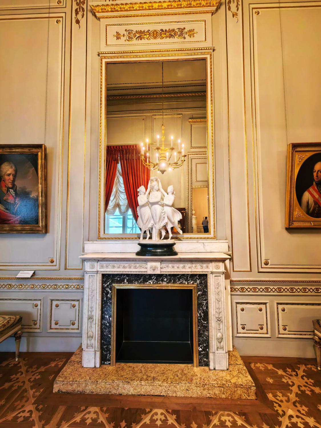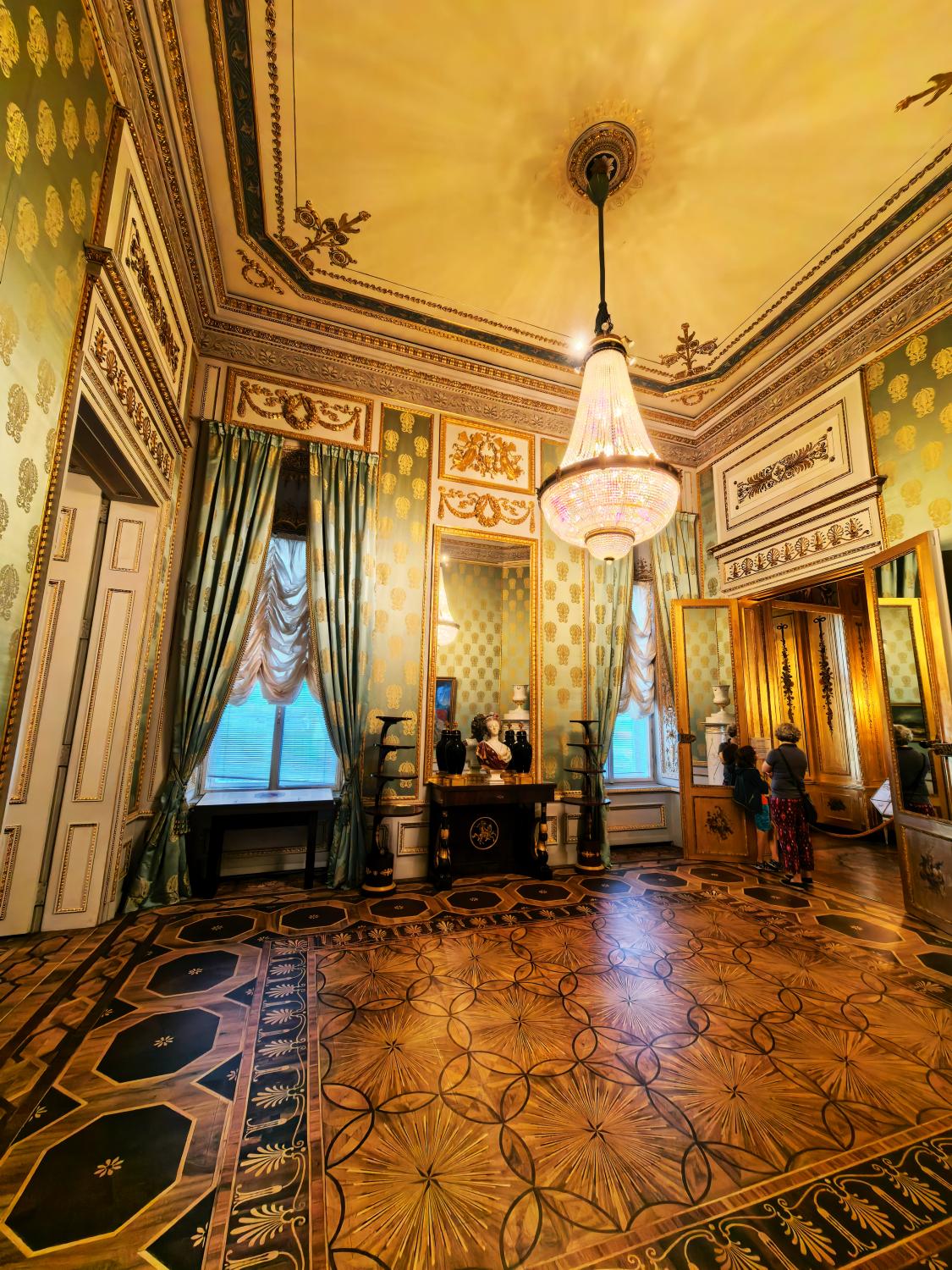 1794年公爵夫妇正式入住后,并未满足于初始规模,于是又委托建筑师路易・约瑟夫・蒙托耶对建筑进行大幅扩建。这次工程不仅拆除了周边的部分旧城墙,还将邻近的奥古斯汀修道院遗迹整合进了宫殿范围,进一步扩大了空间;同时对外立面进行重塑,采用对称的柱廊与山花设计,强化新古典主义的庄重感,内部则新增大理石柱廊、穹顶浮雕与路易十六式家具,让建筑既有皇室居所的奢华,又兼具新古典主义的典雅秩序,奠定了其核心建筑格局。
