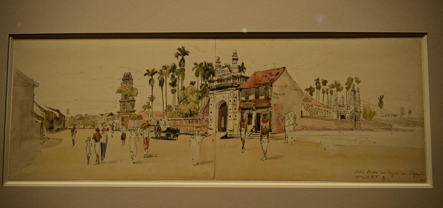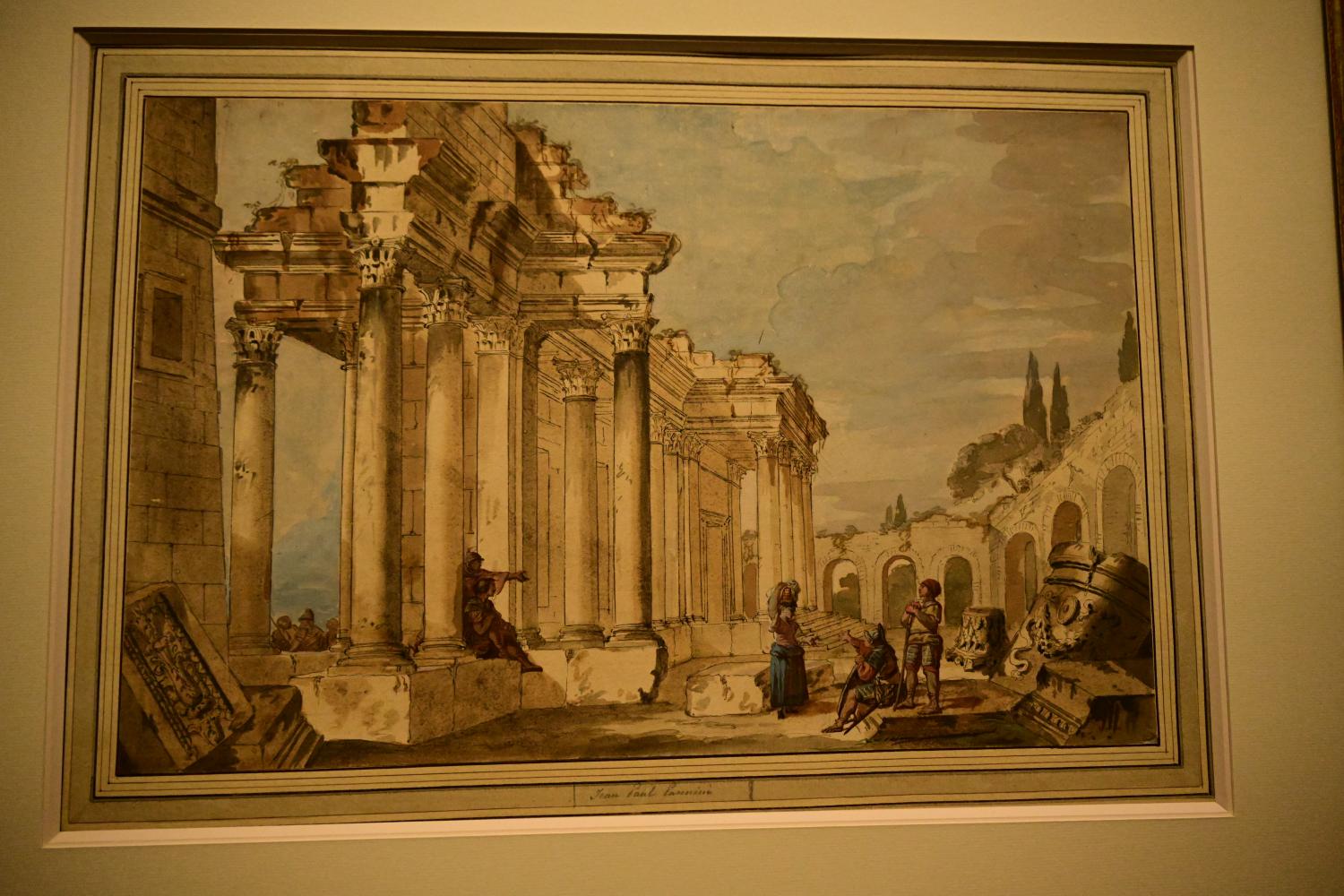帕拉蒂尼山是罗马七丘之一,曾是古罗马贵族宅邸的核心区域,考古发掘承载着对古罗马文明遗迹的探索。作品通过钢笔勾勒精准轮廓、墨水强化细节层次、水彩晕染自然与人文色彩,既写实性记录了考古现场的风貌,也传递出18世纪对古罗马历史遗产发掘与研究的重视,成为艺术见证历史考据的生动载体。