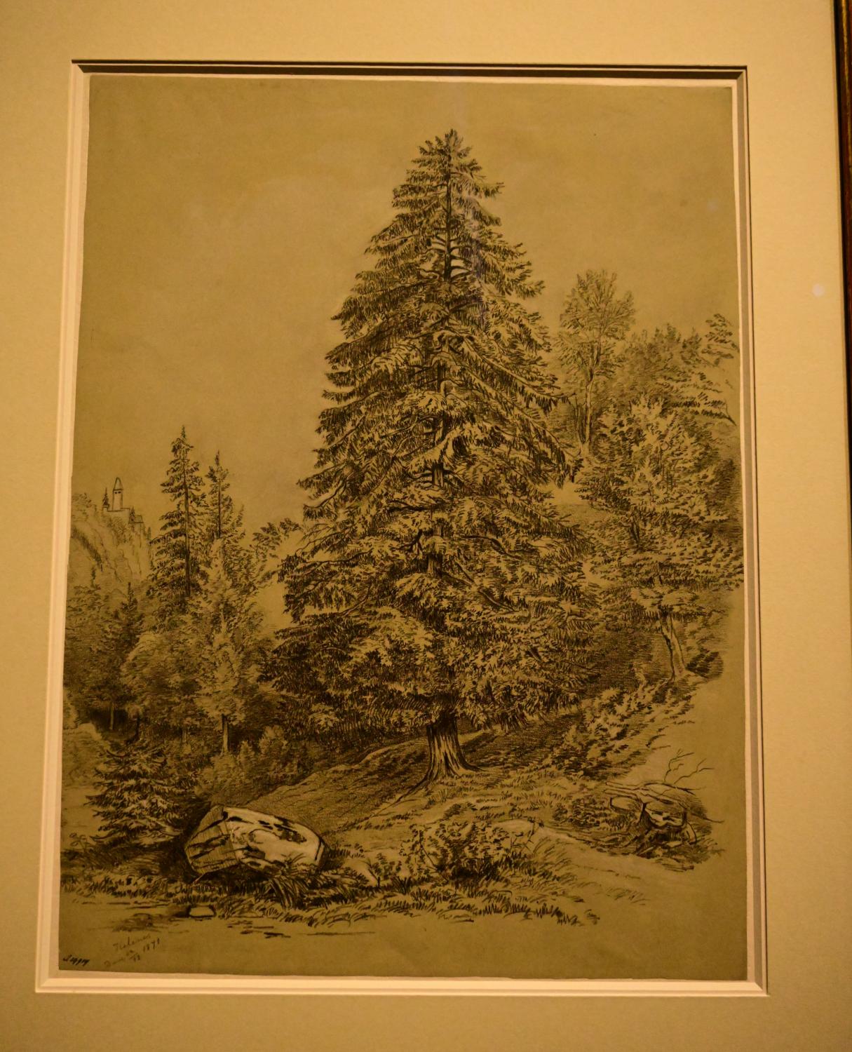技法上,钢笔与墨水精准勾勒出树木纹理、建筑线条等景物轮廓,水彩的晕染则赋予画面色彩层次与氛围,让山脉的厚重、湖水的澄澈、草地的生机浑然一体。整体既展现了卢塞恩湖周边自然景观的壮美,又通过人文元素,传递出自然与生活和谐共生的诗意,体现出艺术家对这片地域特质的精妙捕捉与赞美。