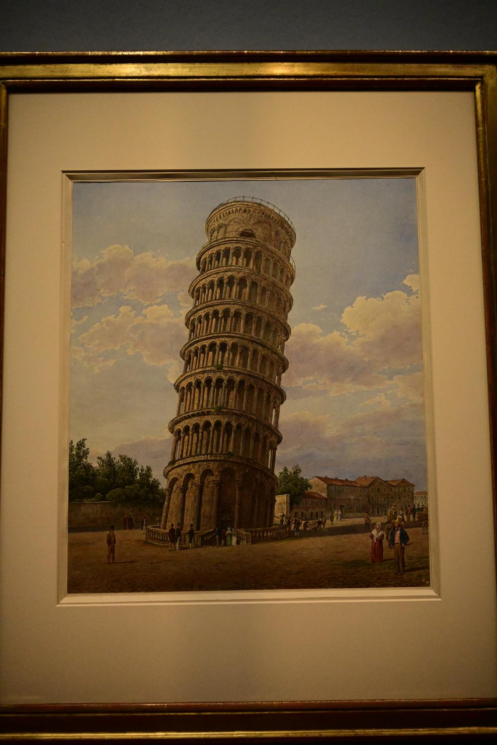 比萨斜塔是意大利比萨的标志性建筑,因地基等因素呈现独特倾斜姿态,是世界文化遗产。作品以水彩的表现力,既刻画斜塔的建筑细节与倾斜特征,也传递出 19 世纪对这一经典景观的艺术化记录与审美呈现。
