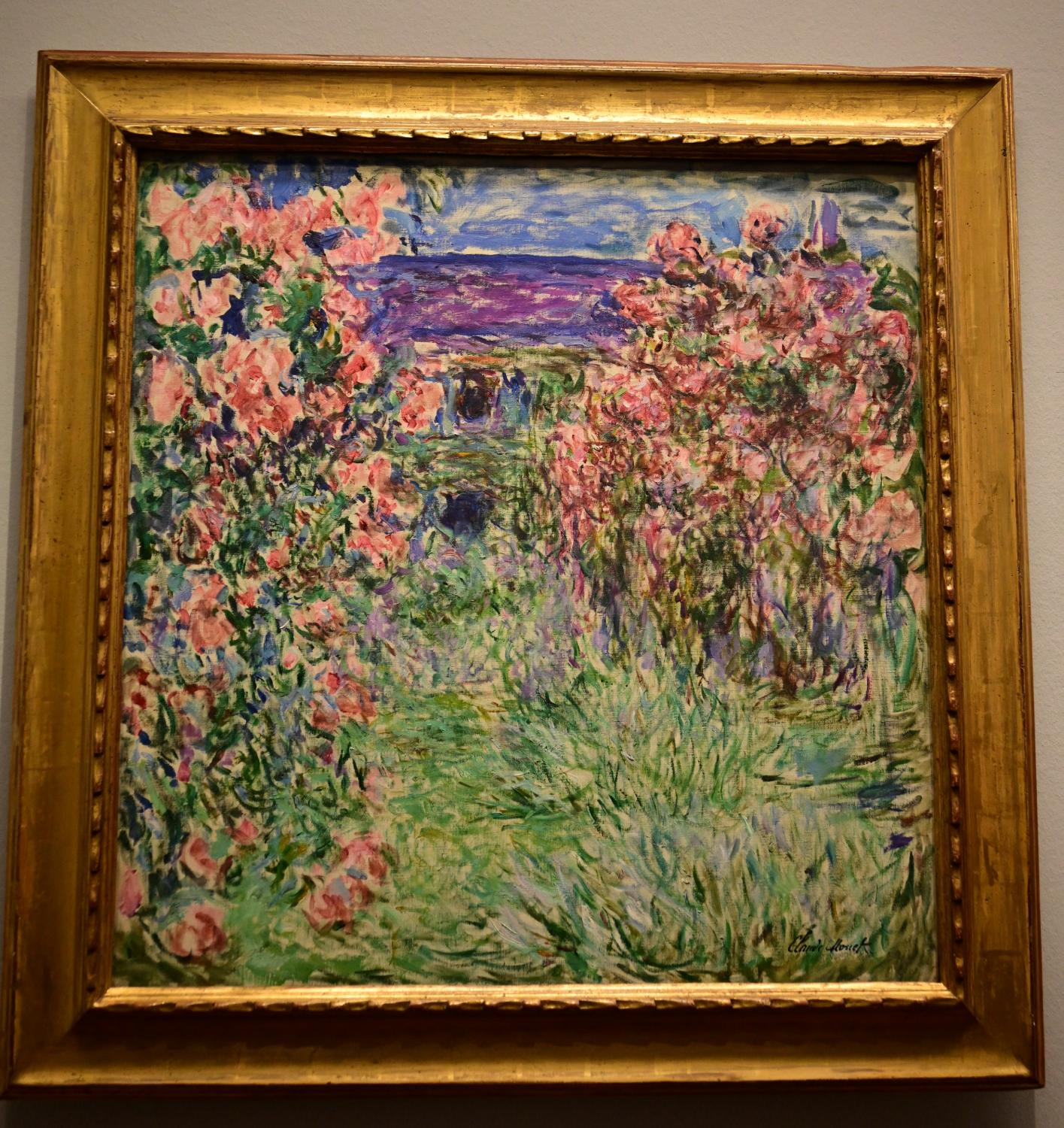 莫奈晚年全身心投入吉维尼花园的打造与描绘,创作了大量以花园、玫瑰、光影为主题的印象派作品。画面中,绚烂的玫瑰丛、灵动的色彩笔触,以及对自然光影瞬间美感的捕捉,都完全契合莫奈的艺术语言:他不追求写实复刻,而是以奔放的笔触、交融的色彩,定格花园里玫瑰盛放时的生机与诗意,这也是莫奈晚年印象派创作的典型特征。