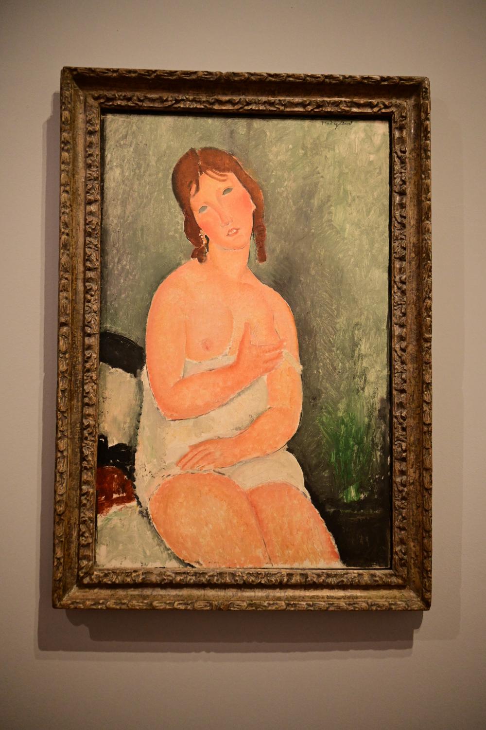 下图作品在博物馆商店中有见到,是阿梅代奥・莫迪利亚尼(1884 – 1920)创作于1918年的作品《女性半裸像》(Female Semi – Nude)。莫迪利亚尼是20世纪初极具辨识度的艺术家,以独特的人物造型与情感表达闻名。