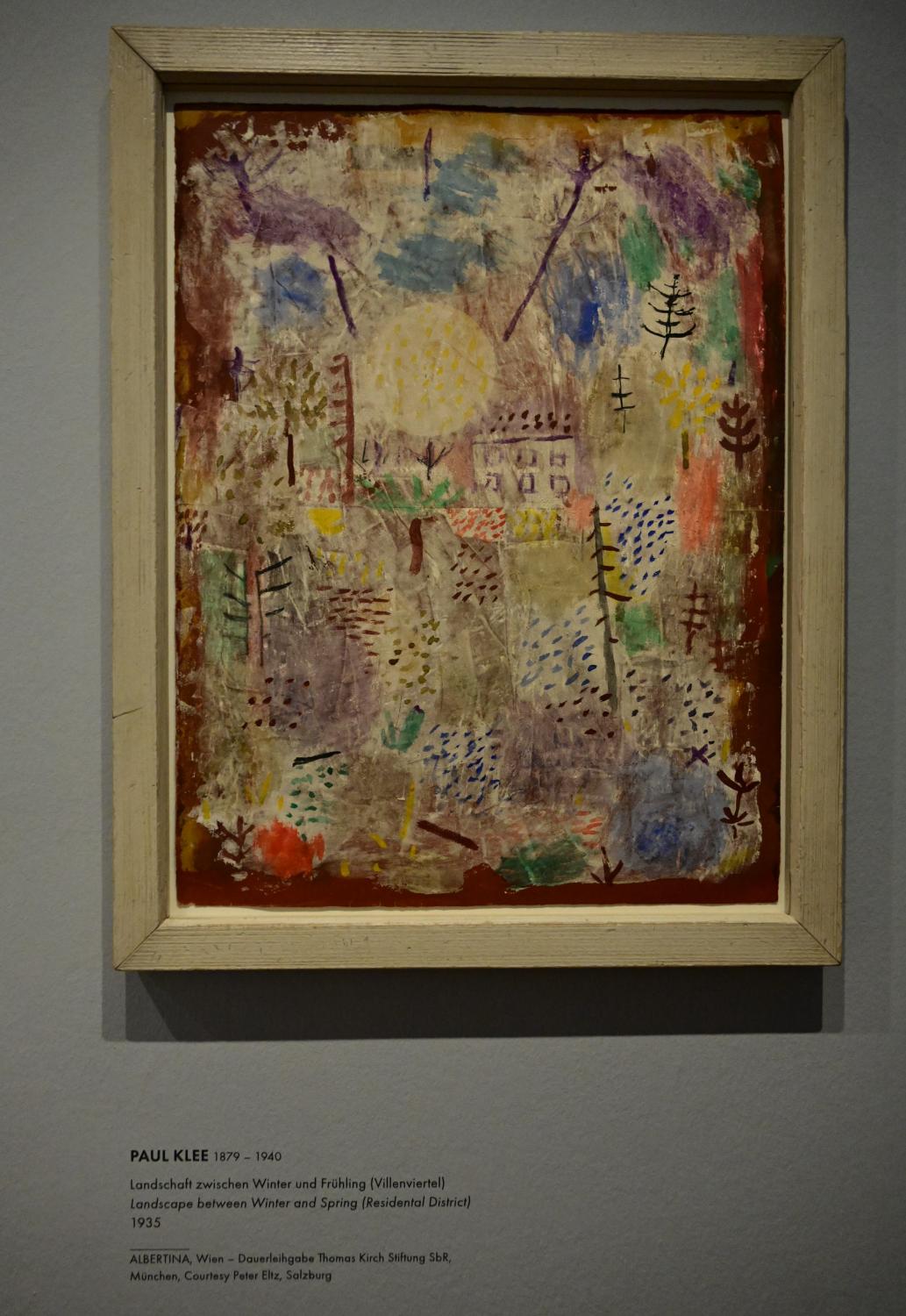 在这幅画中,保罗・克利捕捉冬春交替的季节质感:柔和的紫、蓝、绿、黄等色彩交织晕染,既带着冬日的沉静朦胧,又暗含春日的生机涌动;树木、房屋等景致被提炼为富有韵律的色块与线条,既保留了别墅区风景的意象,又超越写实,如同一首视觉化的 季节音诗,传递出冬春过渡时环境的静谧与诗意,尽显克利以艺术捕捉精神氛围与自然韵律的创作追求。