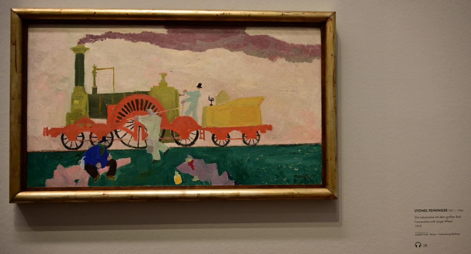 费宁格作为早期现代艺术的关键人物,在画中以大胆明快的色彩与简化的几何造型,重构了工业时代的机车形象。画面里,机车的大轮、机械结构被提炼为富有韵律的形态,地面人物的造型也极具概括性;既捕捉了工业文明的机械质感,又借表现主义式的色彩张力与形式提炼,传递出对现代工业场景的诗意化、节奏感表达,突破传统写实,彰显早期现代艺术对形式与精神表达的探索。